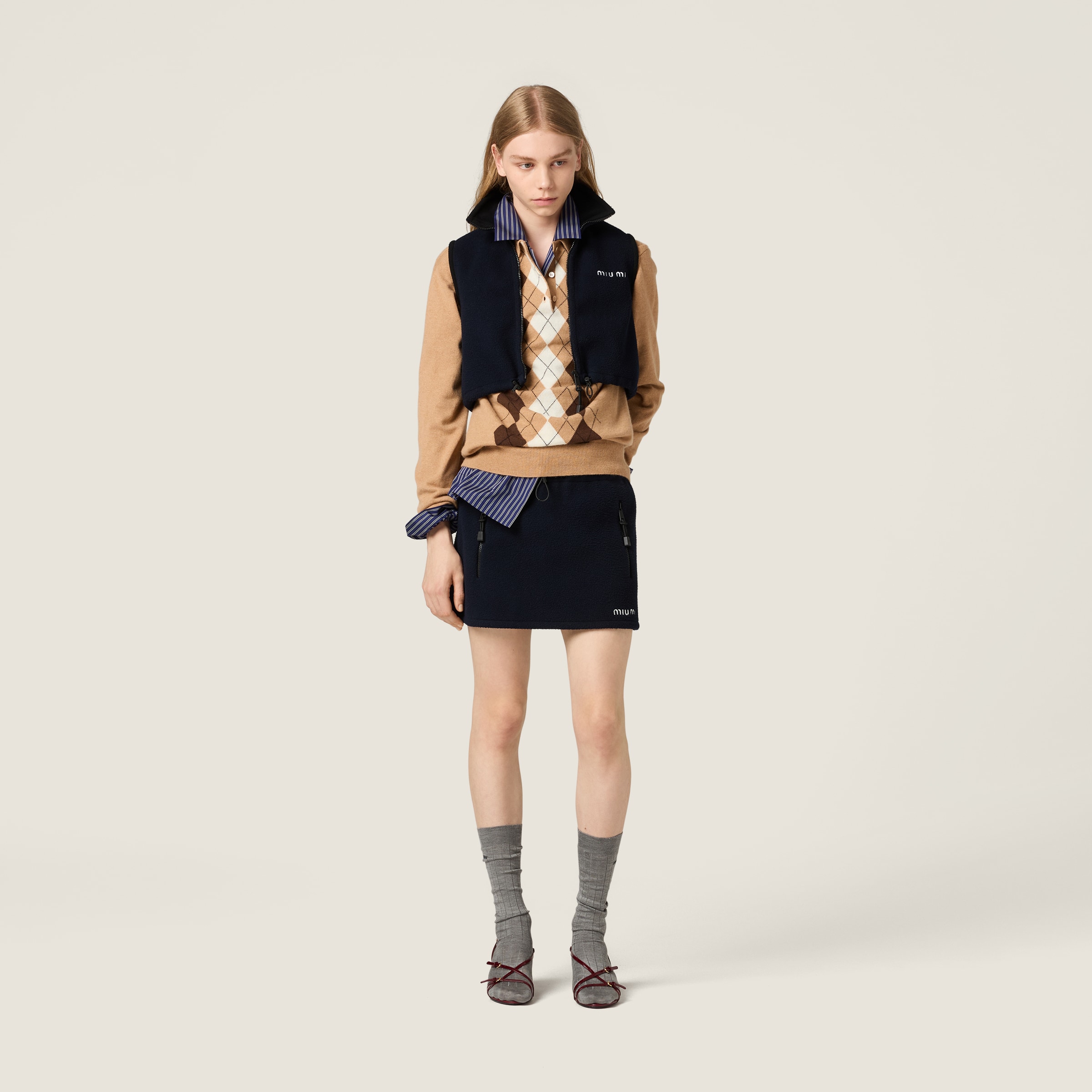 Флис, ткань с современным, повседневным характером, определяет стиль этого топа со стойкой и застежкой-молнией спереди. Вышитый логотип и укороченный крой придают изделию узнаваемый характер, идеально подходящий для смелых сочетаний с классическими элементами.
