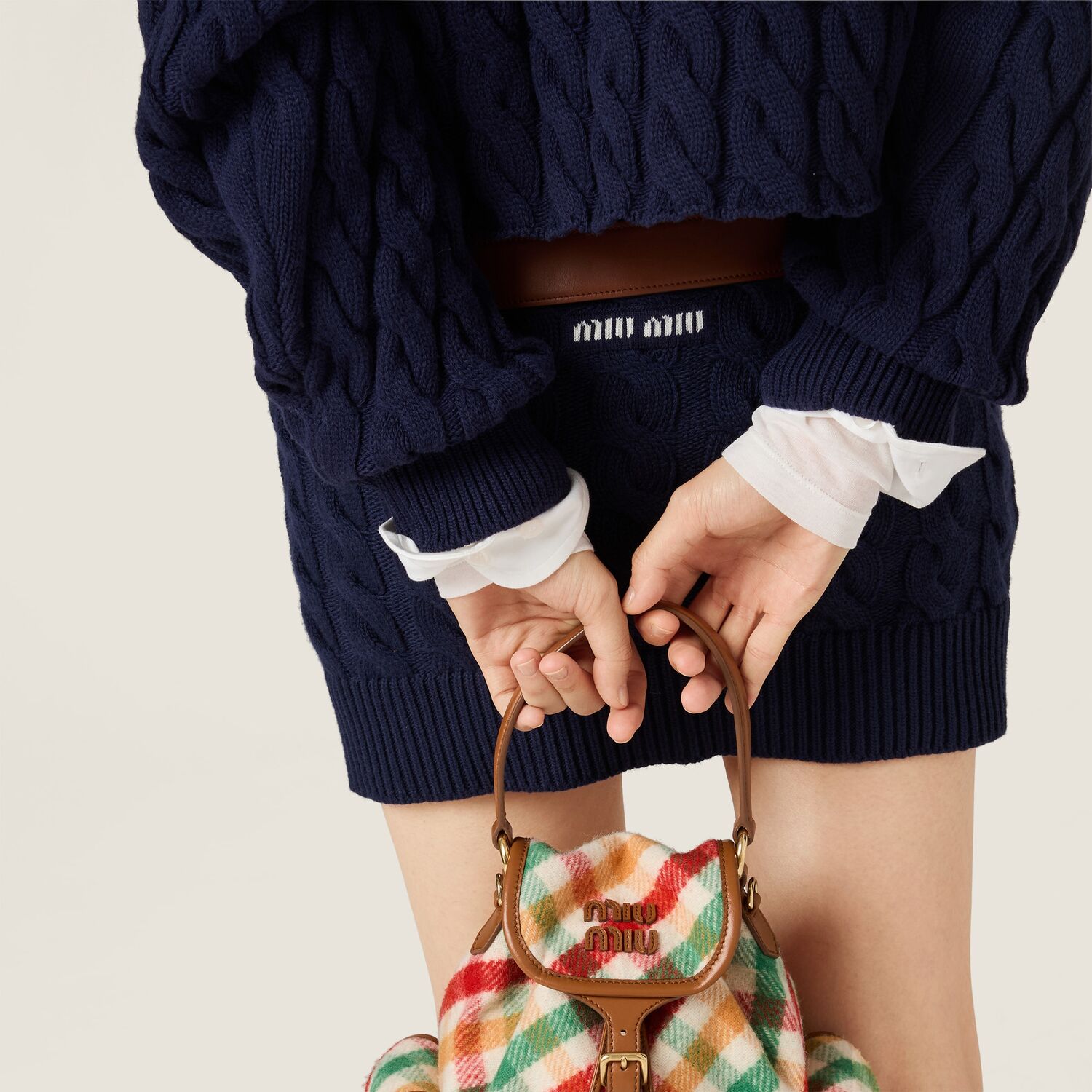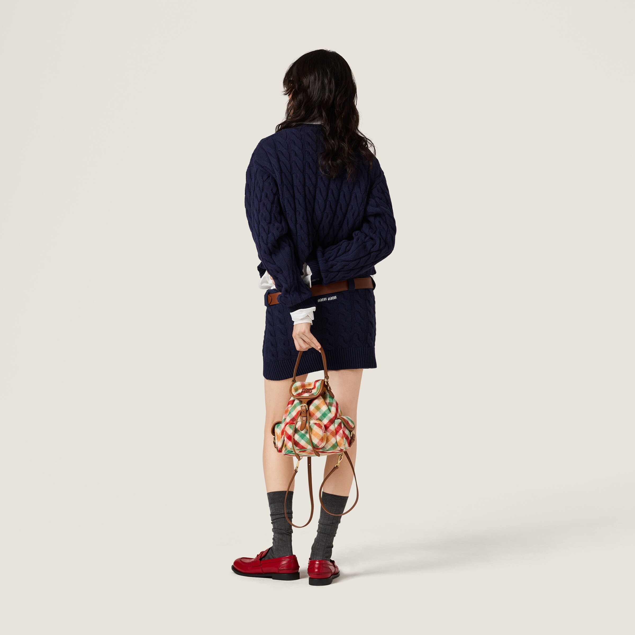 Элегантный узор в виде "кос" придает этой шерстяной мини-юбке объемность, добавляя мягкую глубину линиям и обновляя классическую вязаную одежду с помощью женственной, современной эстетики.
