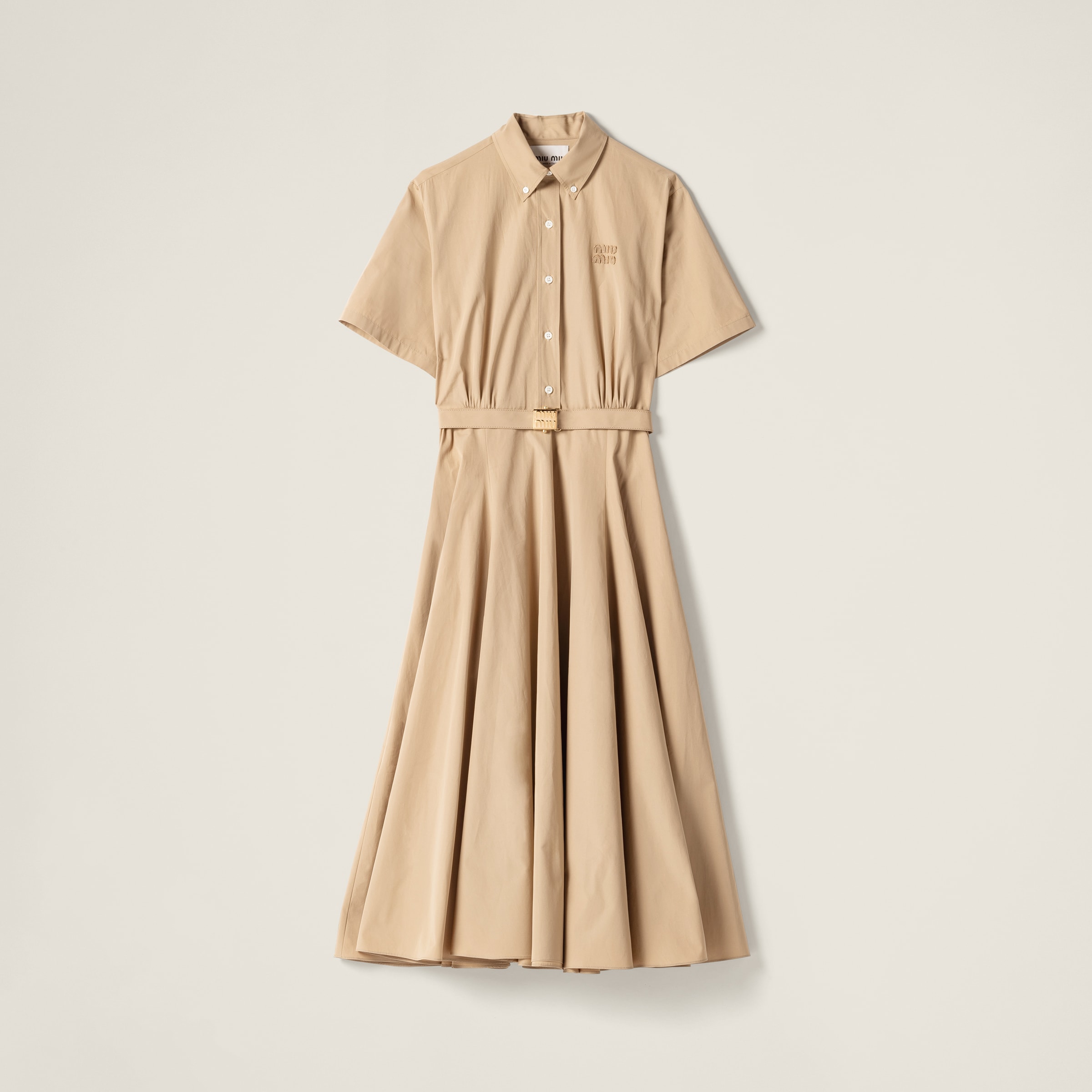 Вдохновленная рабочей одеждой и дополненная изысканными деталями, эта рубашка-платье из поплина отличается фирменной пряжкой с логотипом Miu Miu на поясе, придающей образу культовую завершенность.