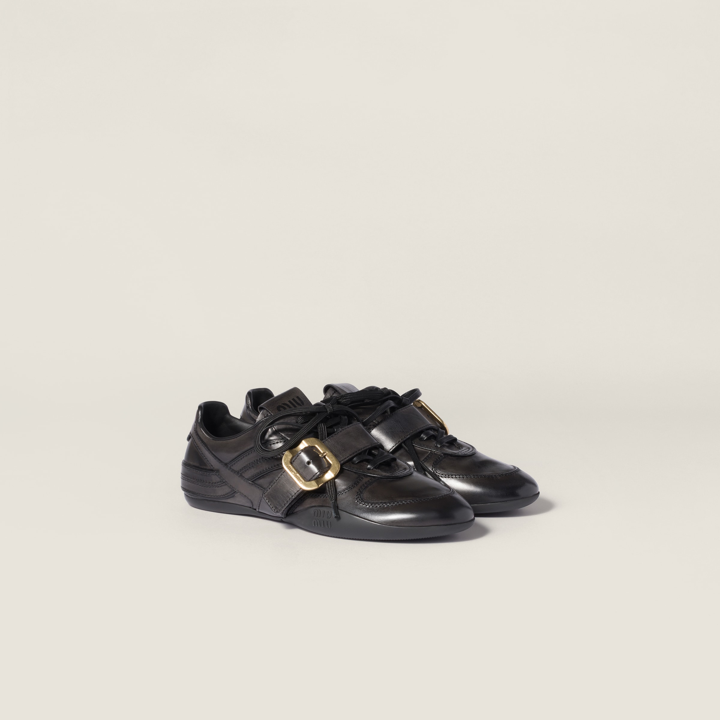 Кожаные кроссовки с пряжкой MIU MIU, черный