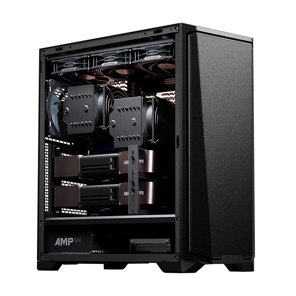 Корпус черного цвета с улучшенной системой охлаждения, который подходит для крупных материнских плат. Конструкция модели позволяет эффективно циркулировать воздуху внутри корпуса. На задней панели предусмотрено специальное отделение для управления кабелями, а модульная конструкция без винтов упрощает сборку и разборку.