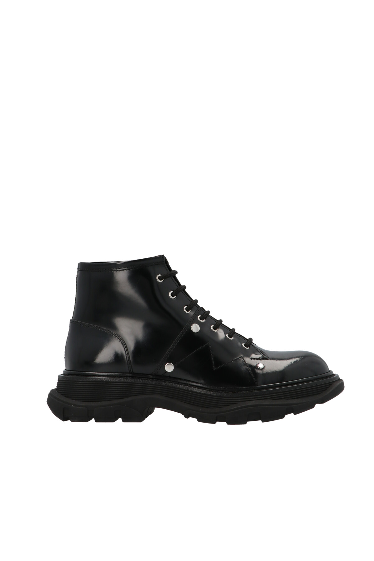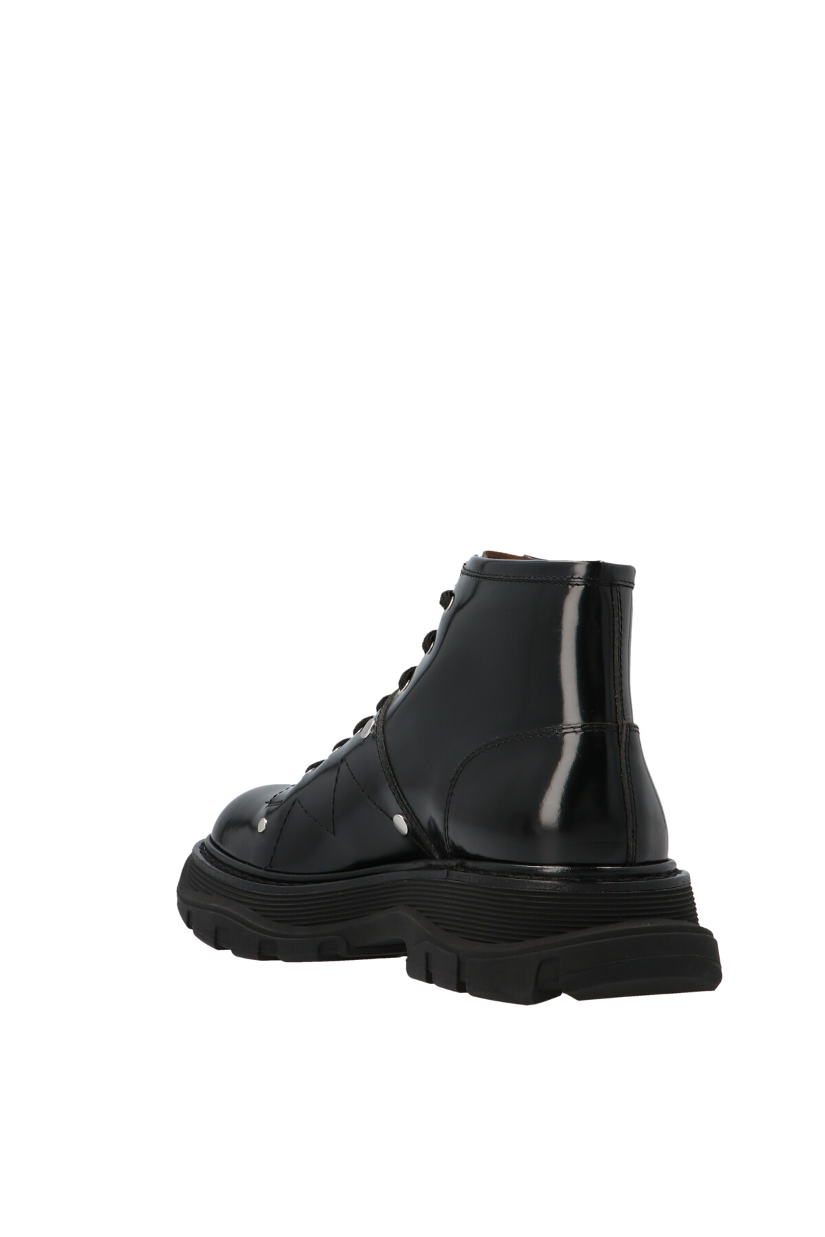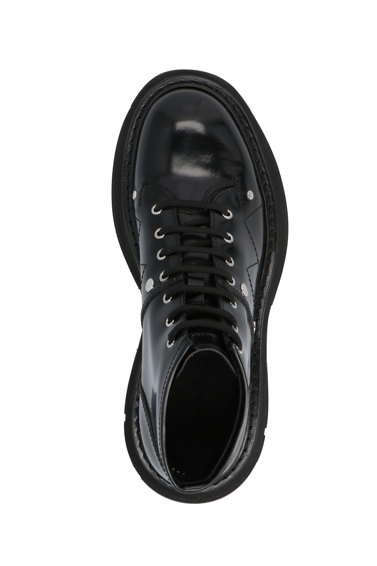 Кожаные ботинки Alexander McQueen с контрастной прострочкой, увеличенной резиновой подошвой и шнуровкой.