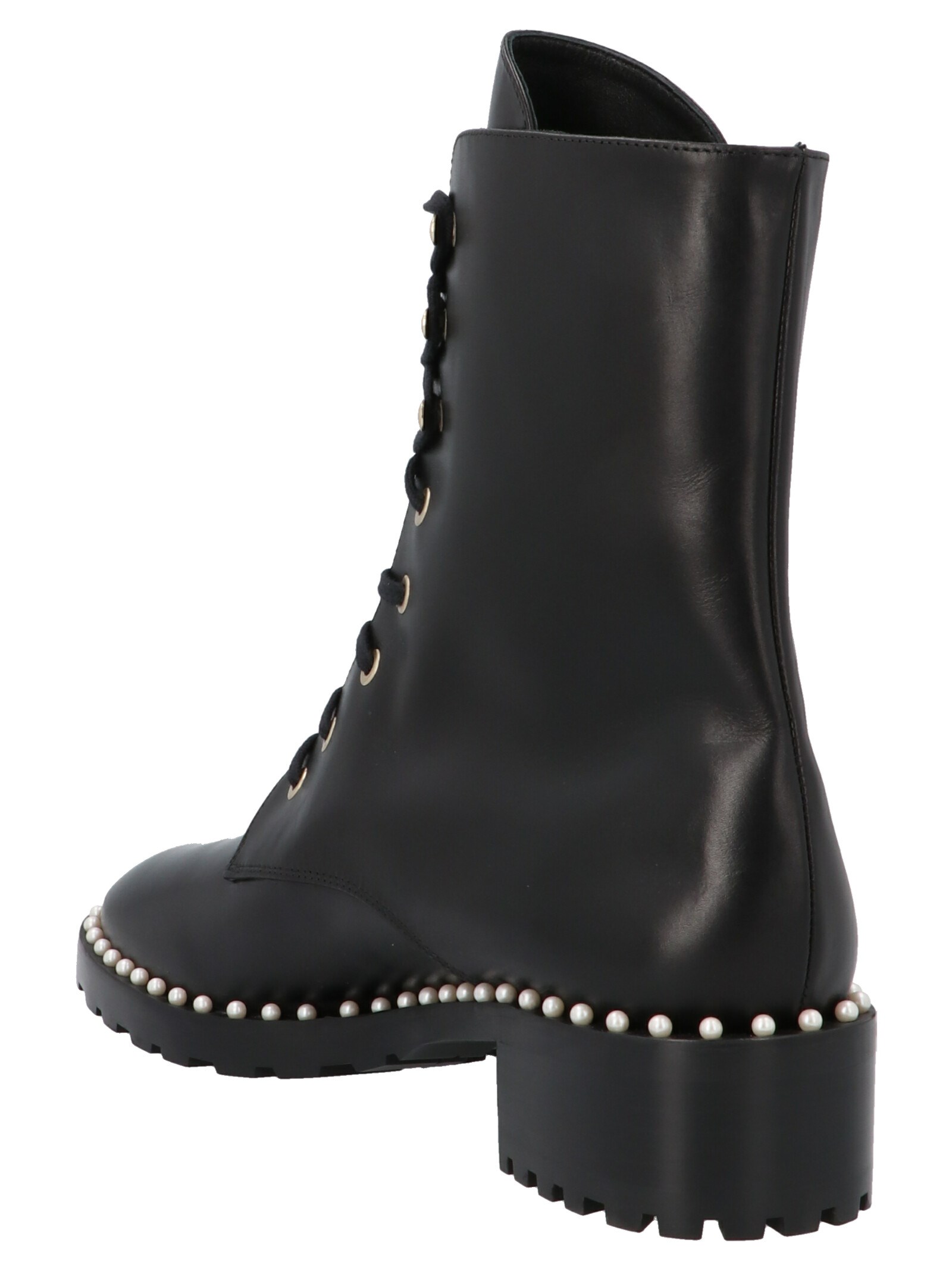 Ботинки на шнуровке Stuart Weitzman 'Allie', золотистая фурнитура, инкрустированные жемчужины, резиновая подошва. Изготовлены из кожи, любые видимые зернистости являются особенностями материала.