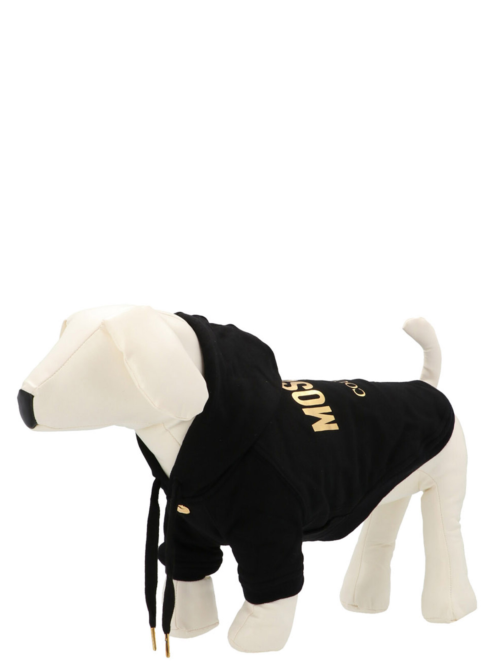 Собачий свитшот с логотипом 'Moschino', кнопками и капюшоном.