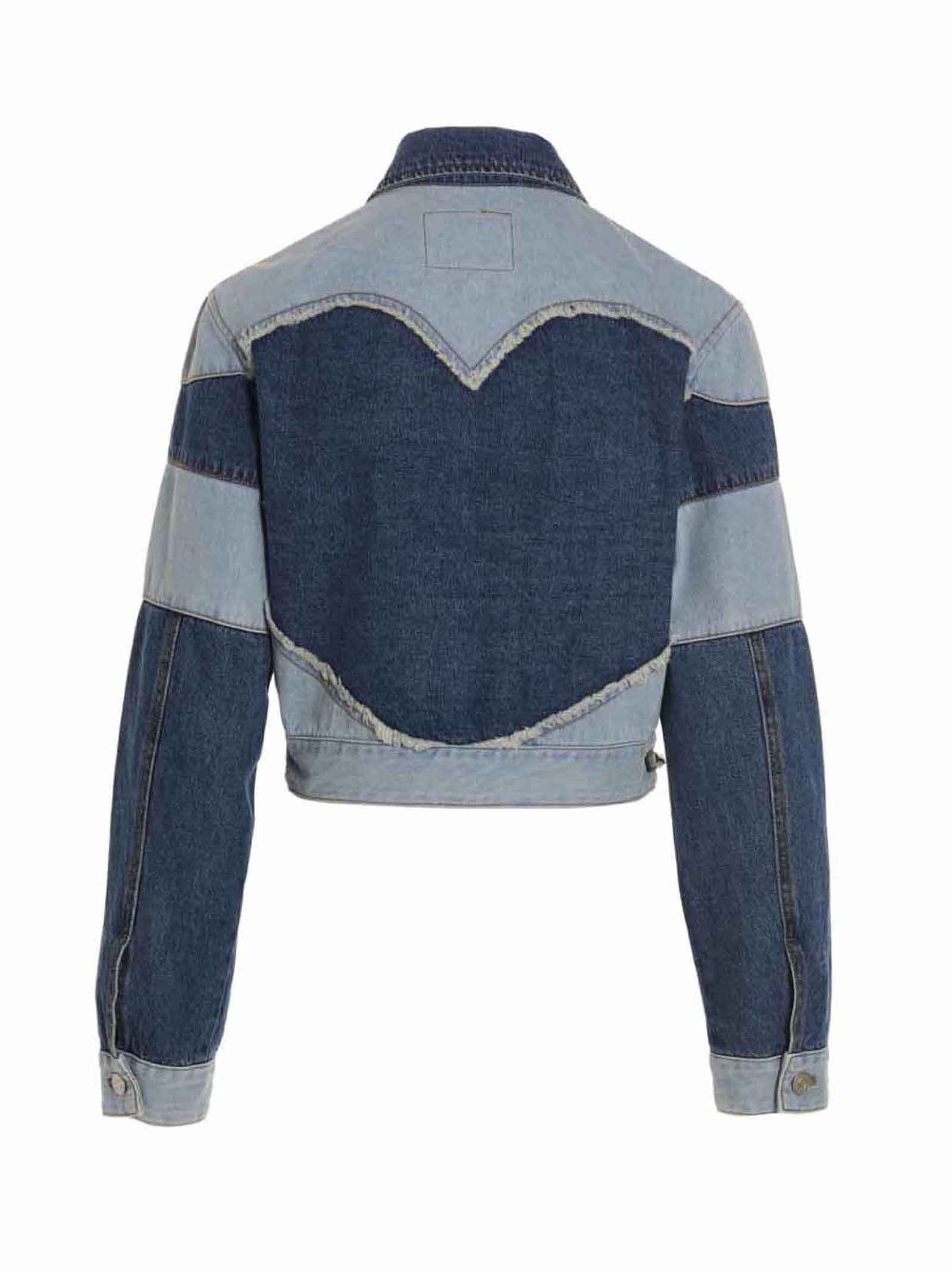 Джинсовая укороченная куртка Mahina с пэчворком и западными пряжками по бокам.