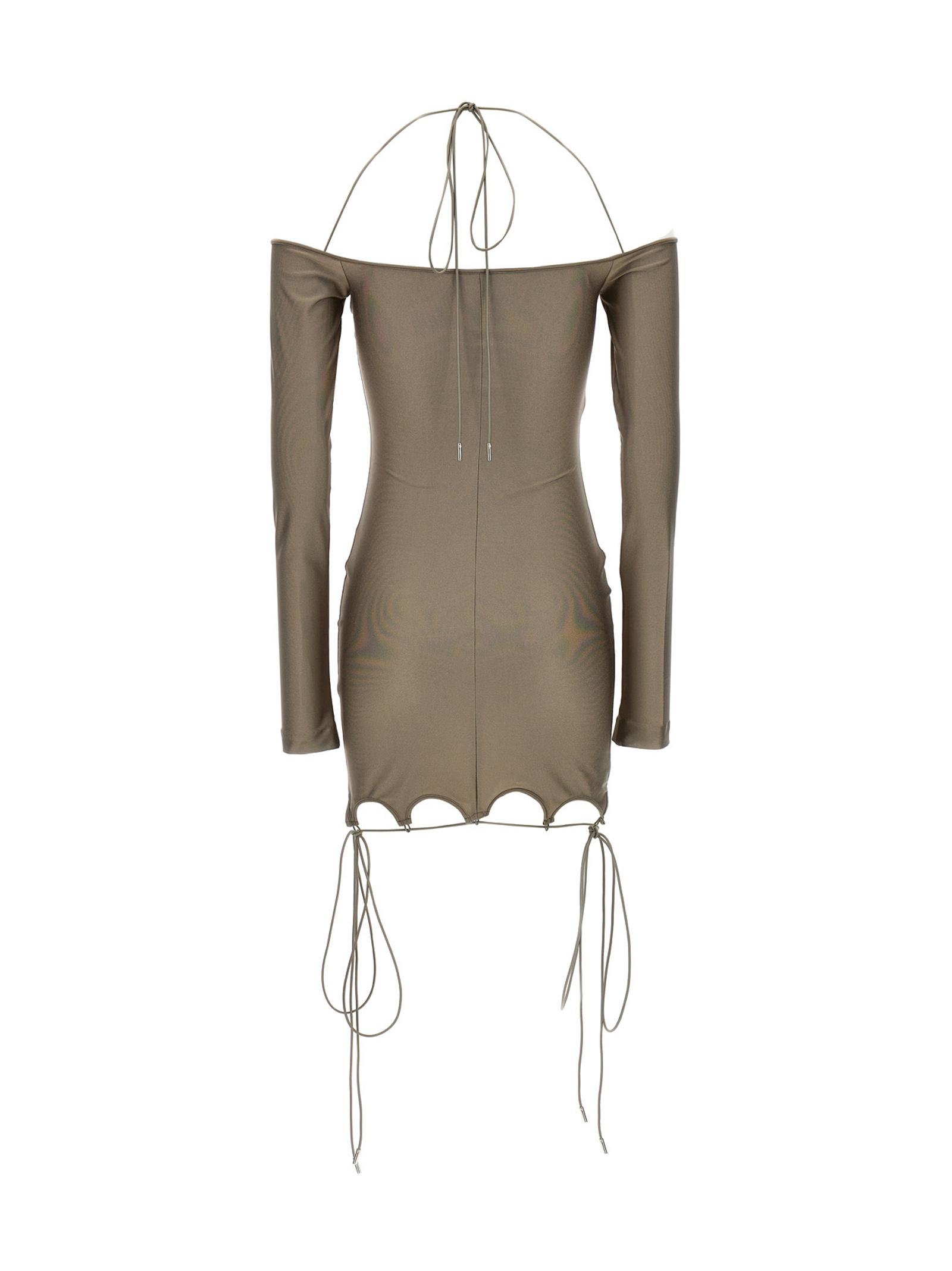 Платье 'Lyna' из блестящей военной лайкры с расклешенным вырезом и подолом, с металлическим логотипом.