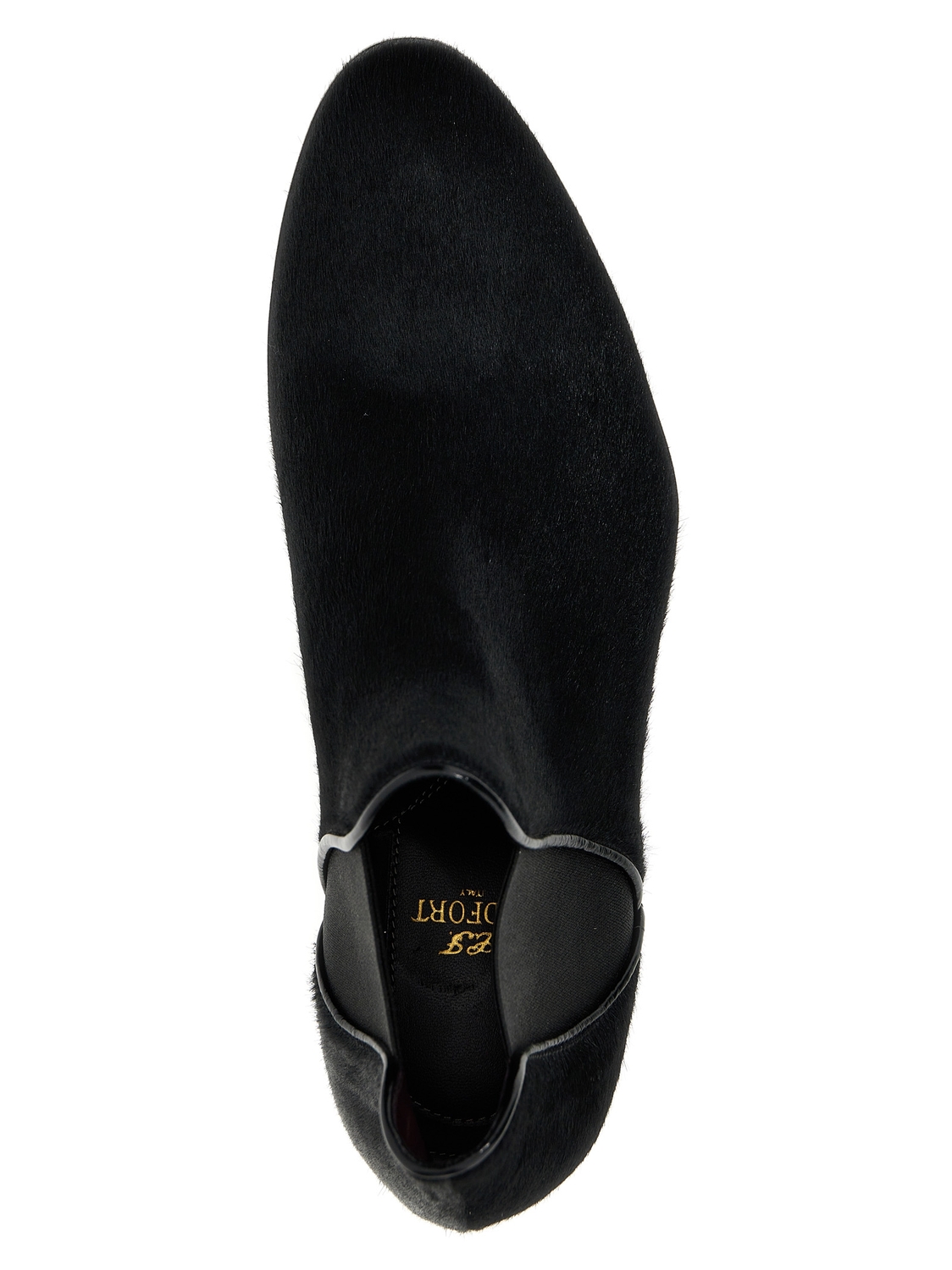 Ботильоны из телячьей шерсти с кожаной подошвой и эластичной вставкой.