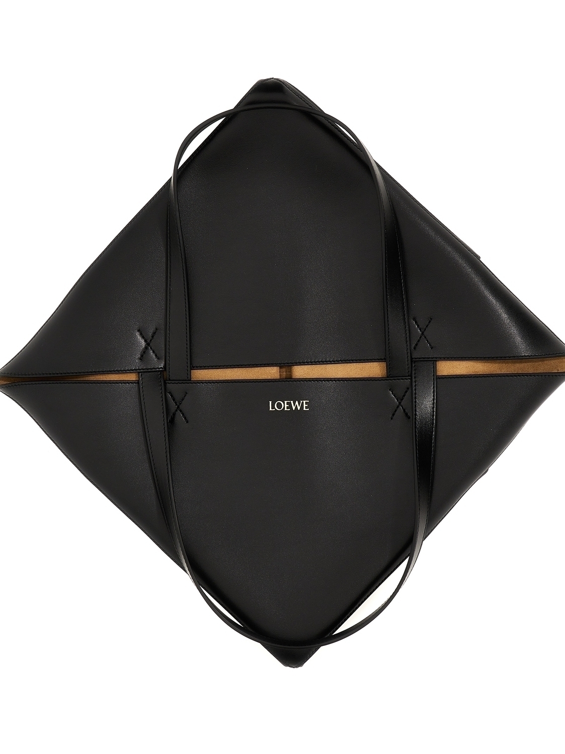 Шоппер 'Puzzle Fold Tote XL' из блестящей телячьей кожи с геометрической строчкой, двумя фиксированными ручками, тисненым логотипом спереди, замшевой подкладкой, складывается внутрь.