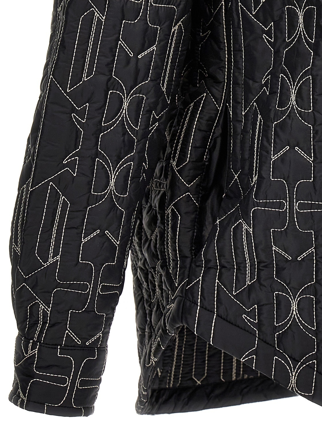 Стеганная куртка Dover All Monogram из нейлона со стеганым узором и принтом-логотипом по всей поверхности, застежка на пуговицы, воротник-рубашка, карманы и длинные рукава с манжетами.