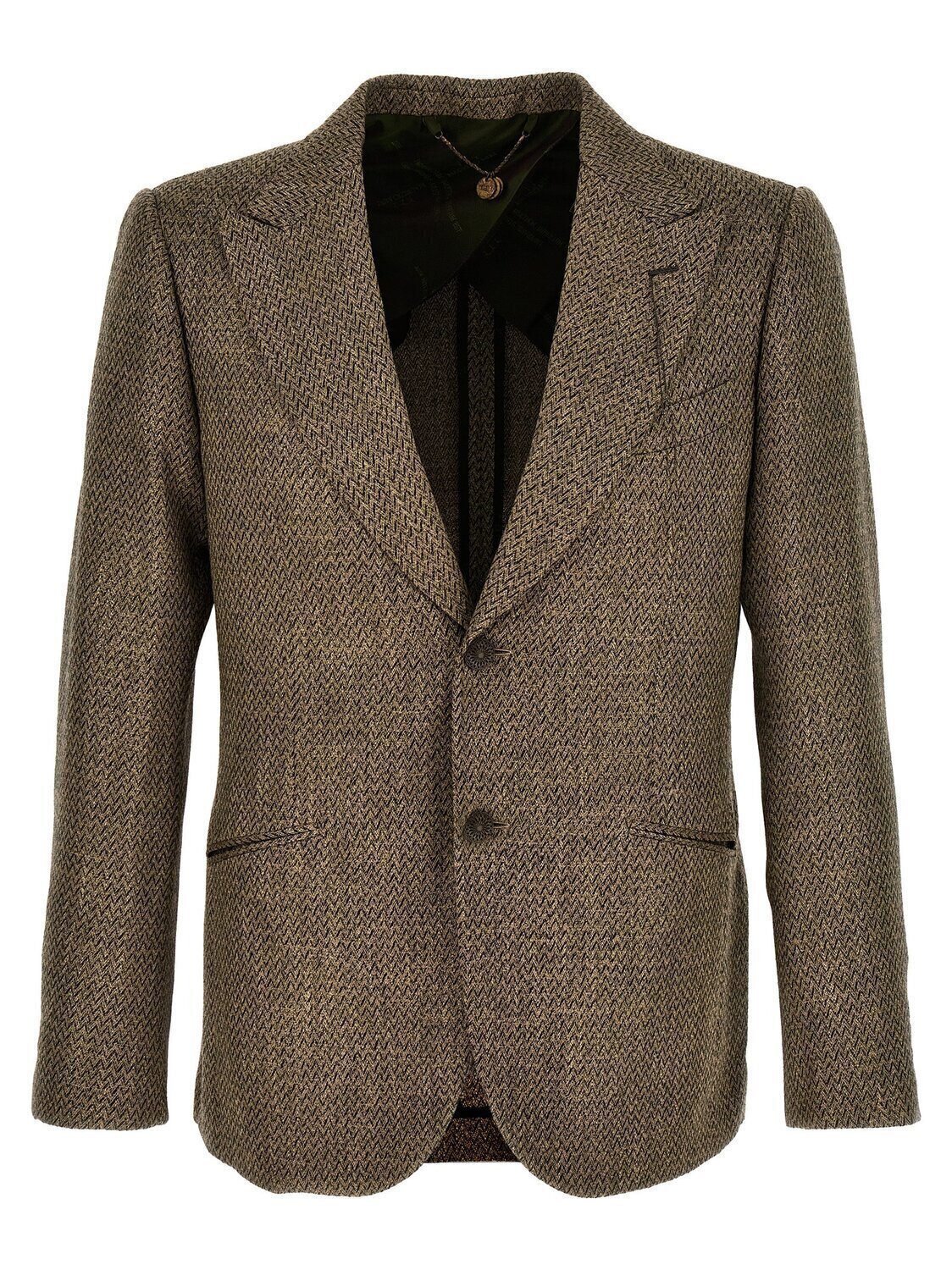 Однобортный пиджак из шерстяной смеси с рисунком «елочка» Keanu с застежкой на пуговицы, карманами, длинными рукавами и разрезом сзади.