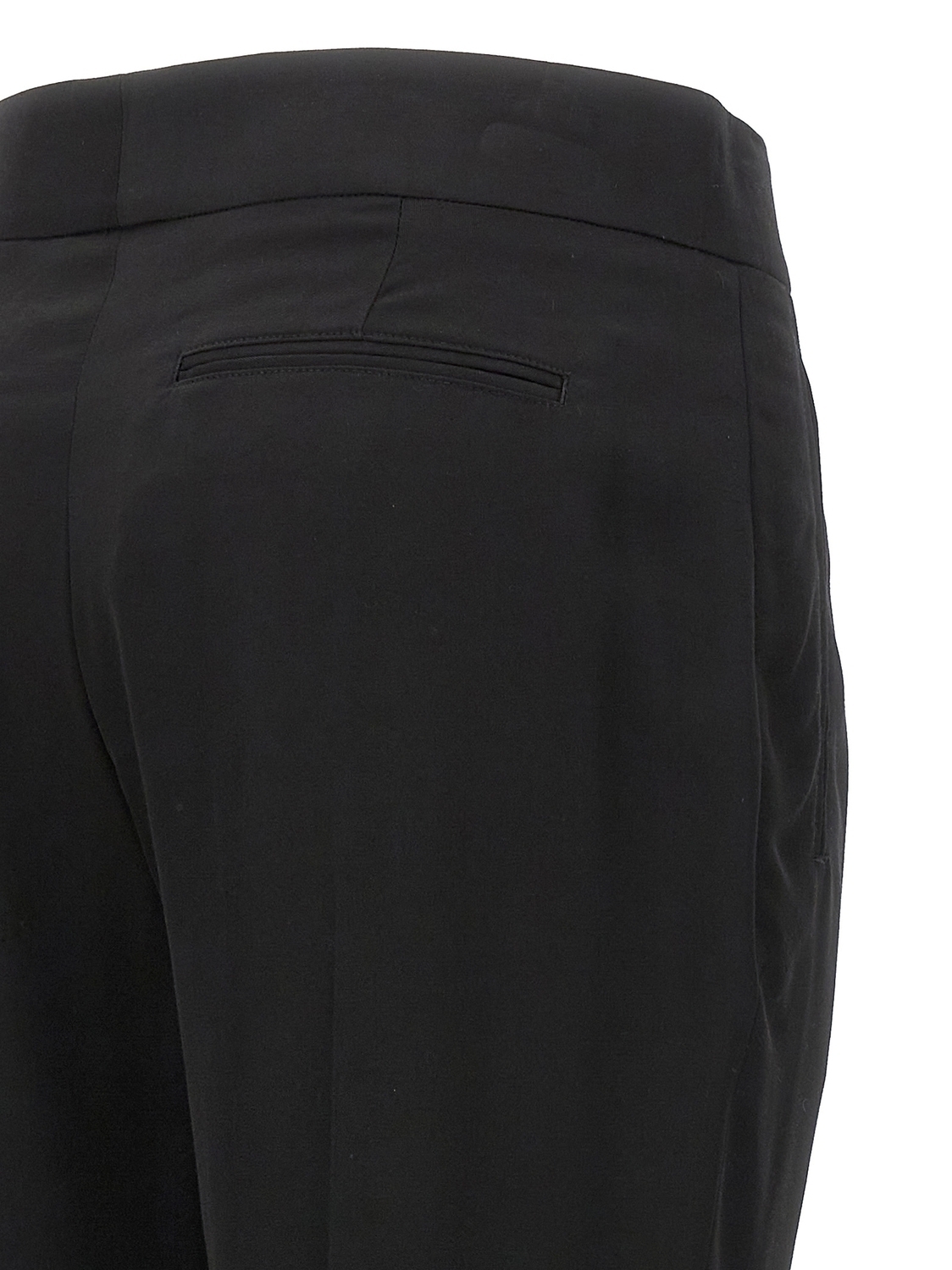Брюки из вискозы, застежка на молнию и крючок с золотистой металлической планкой с гравированным логотипом, карманы, стрелки и центральная складка.