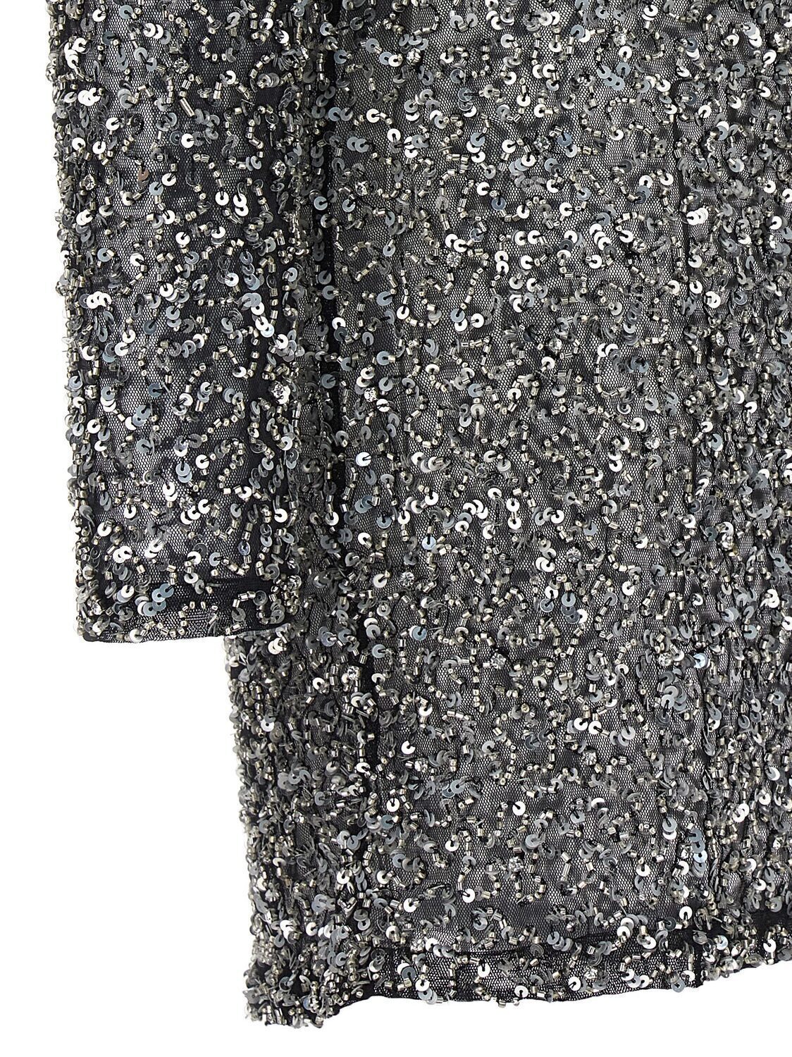 Платье 'Emani' из прозрачной сетчатой ткани, покрытое бусинами и пайетками, с круглым вырезом, длинными рукавами и застежкой-молнией на спинке.