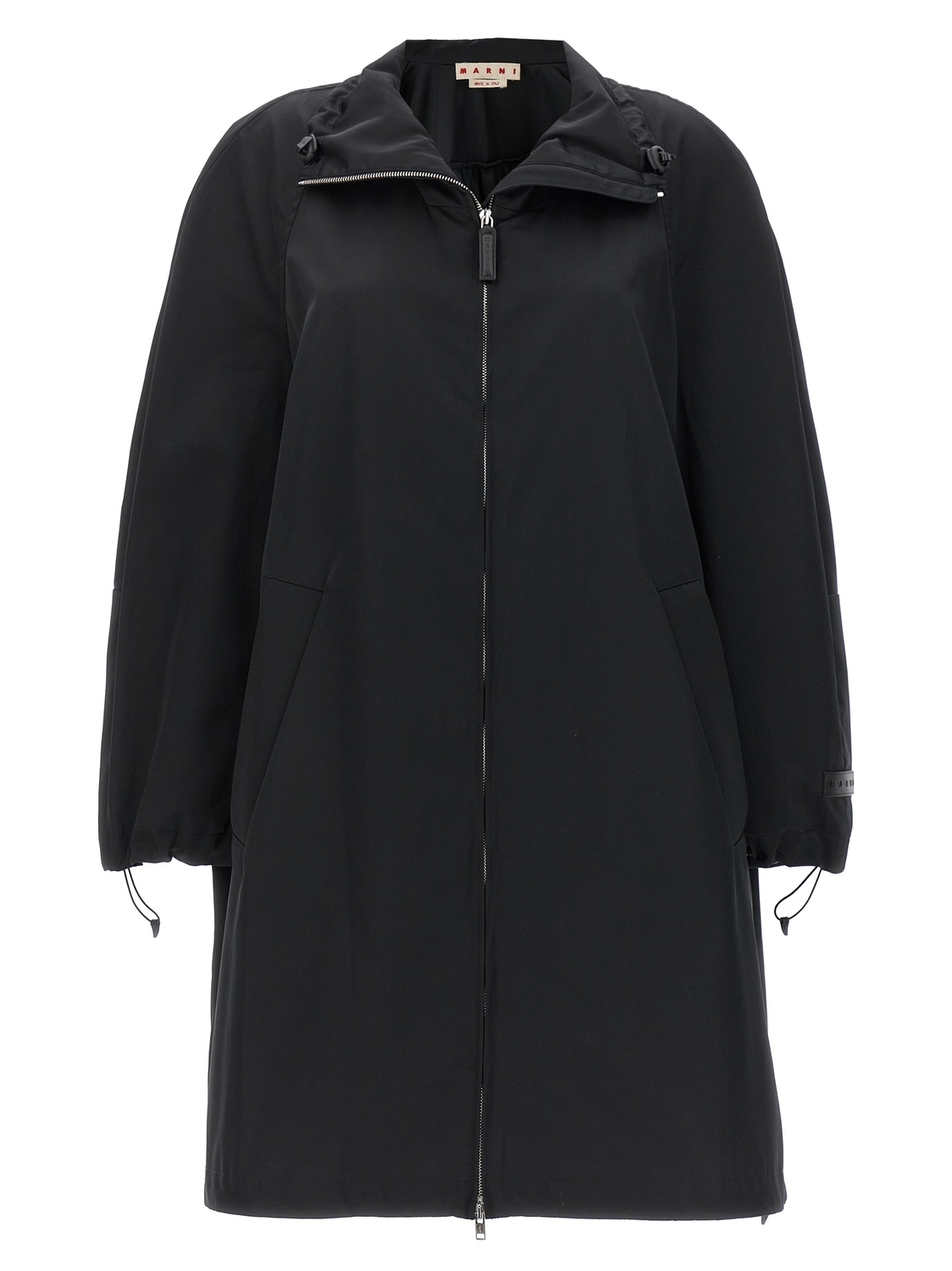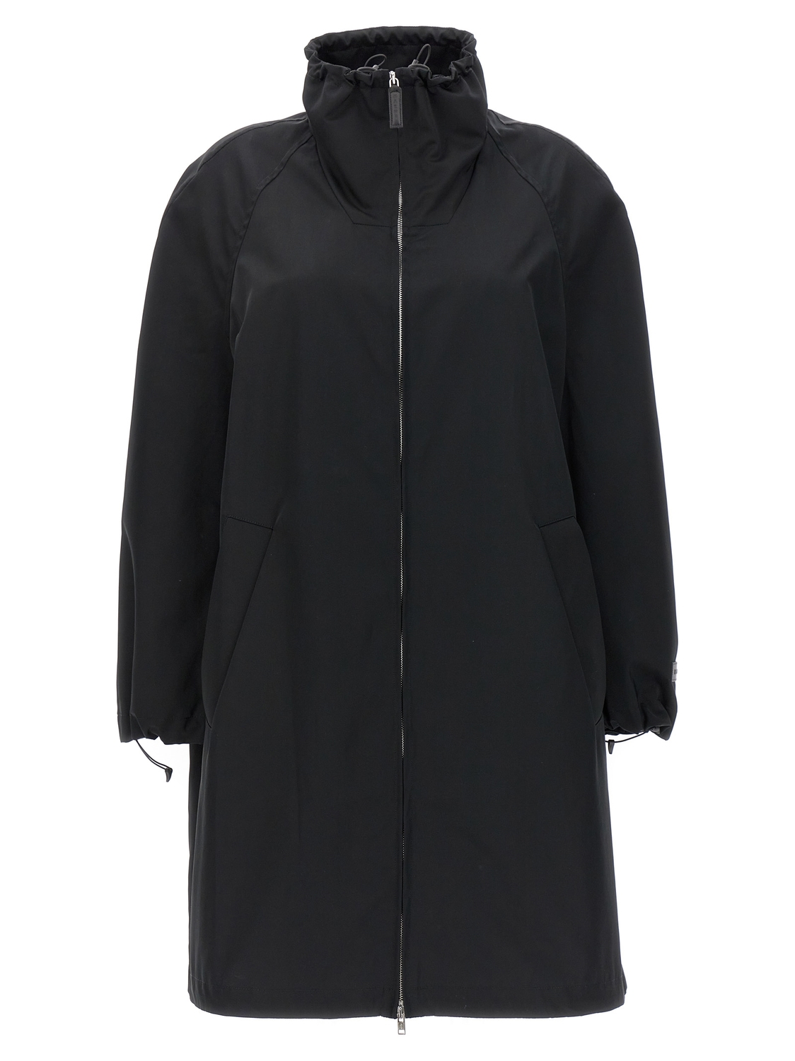 Парка из сатиновой технической ткани с капюшоном и застежкой на молнию.