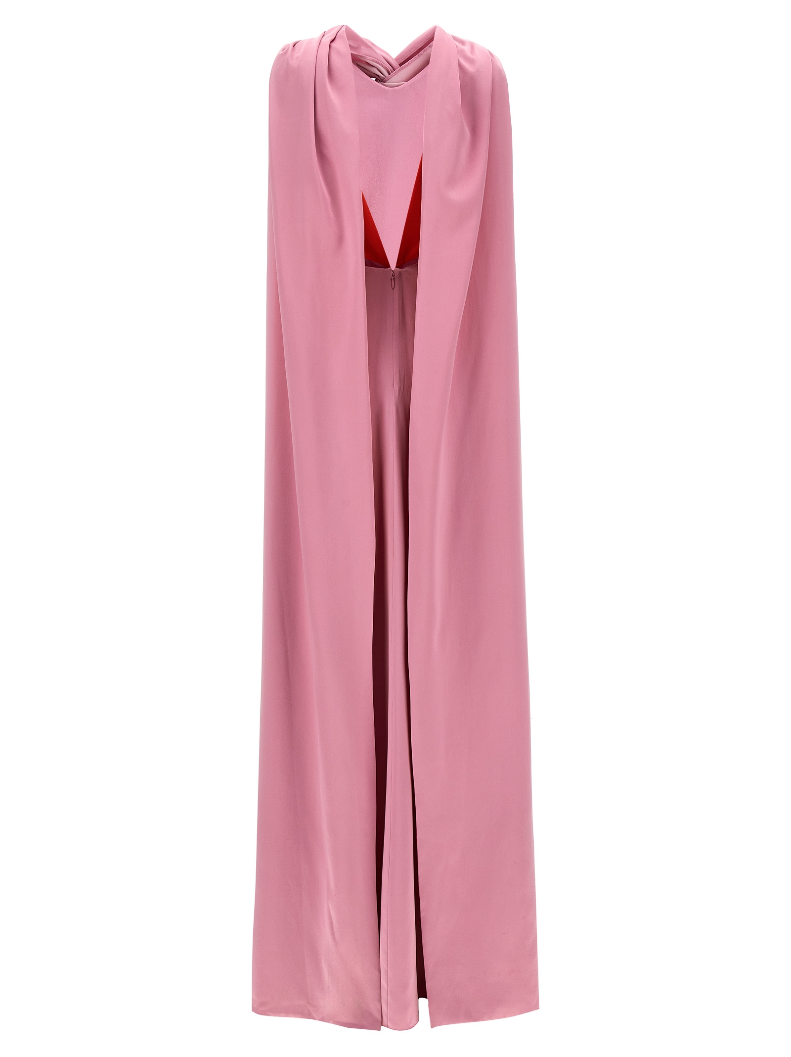 Длинное шелковое платье 'Amanita' с накидкой и контрастной подкладкой. Модель без рукавов с узлом на груди.