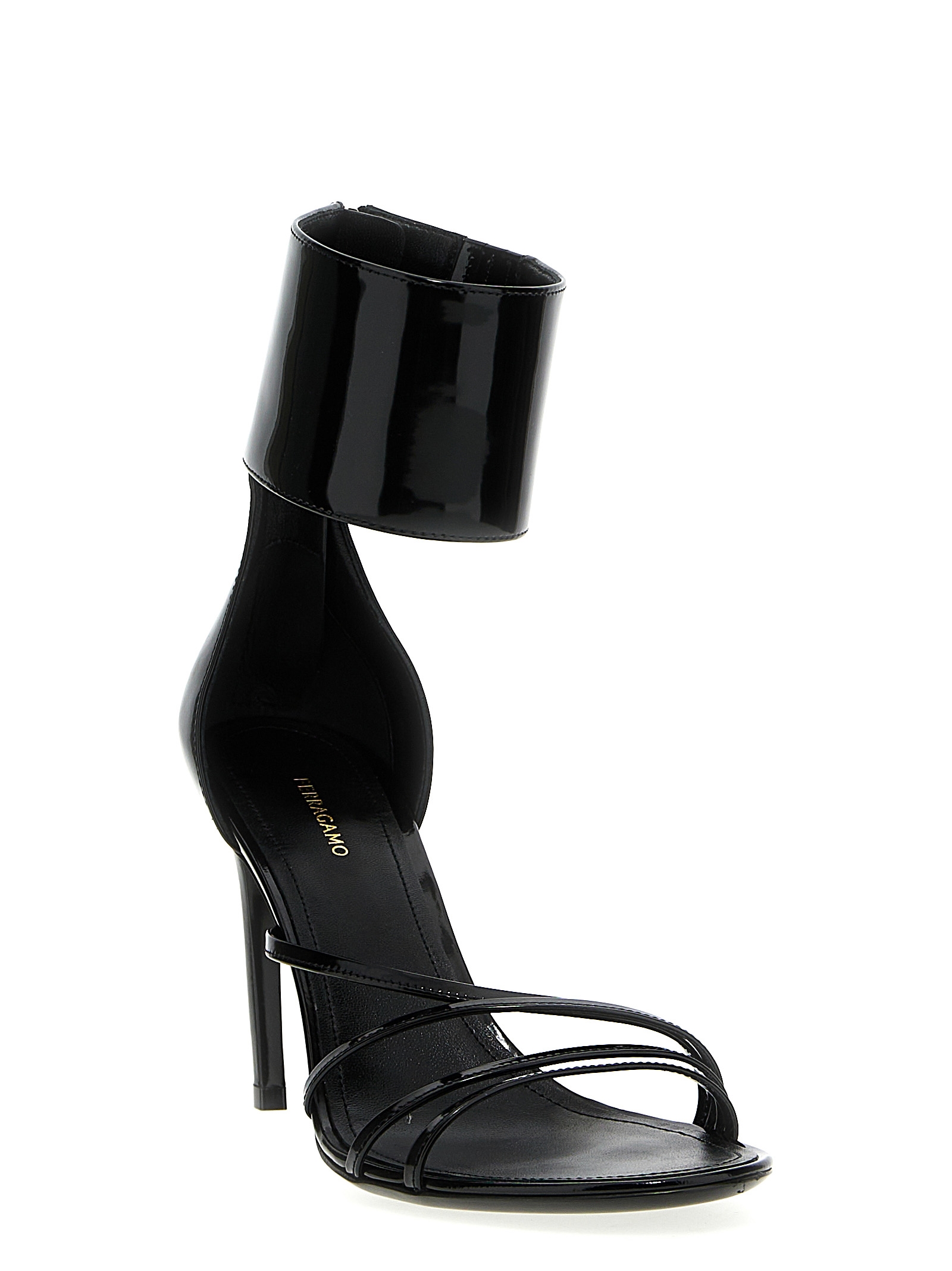 Сандалии «Clethra» из блестящей наппированной кожи, ремешок на щиколотке с задней молнией, изогнутый каблук.