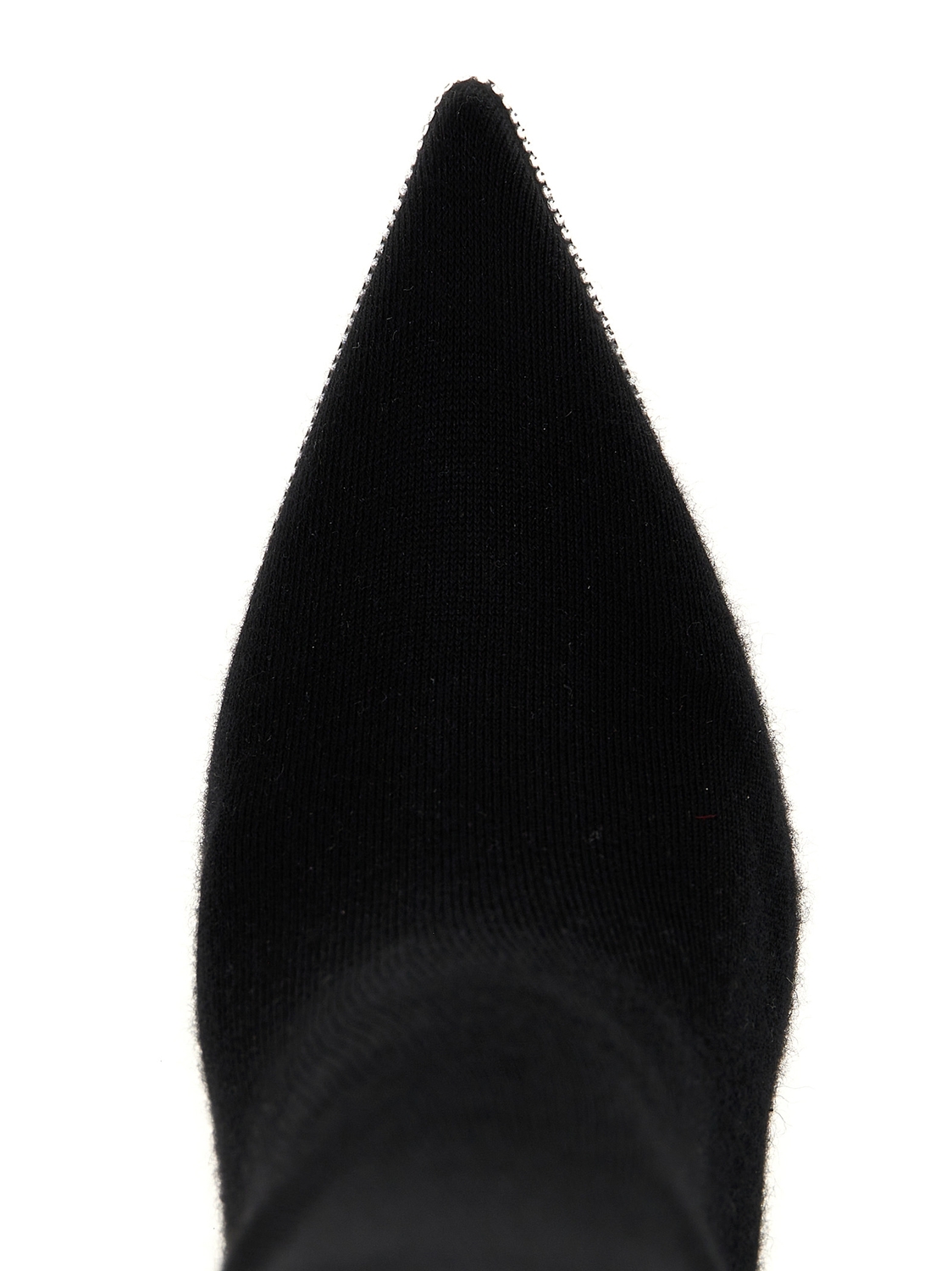 Вязаные ботинки, модель в виде носка с высоким голенищем, аппликация из страз, каблук из замши.