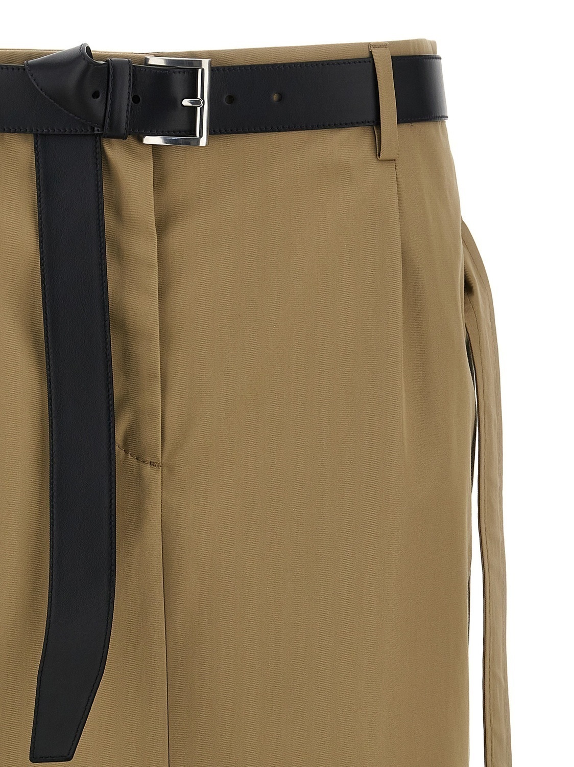 Юбка из хлопкового твила с кожаным поясом на талии, застежкой на молнию и крючок, карманами и разрезом сзади.