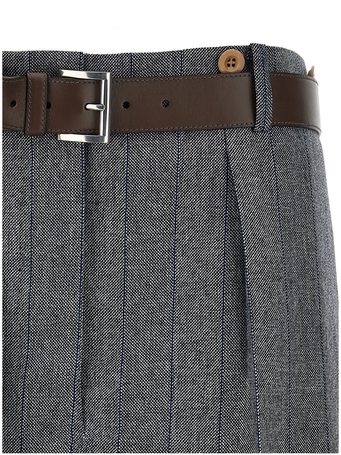 Юбка из шерсти в полоску Prada, серый
