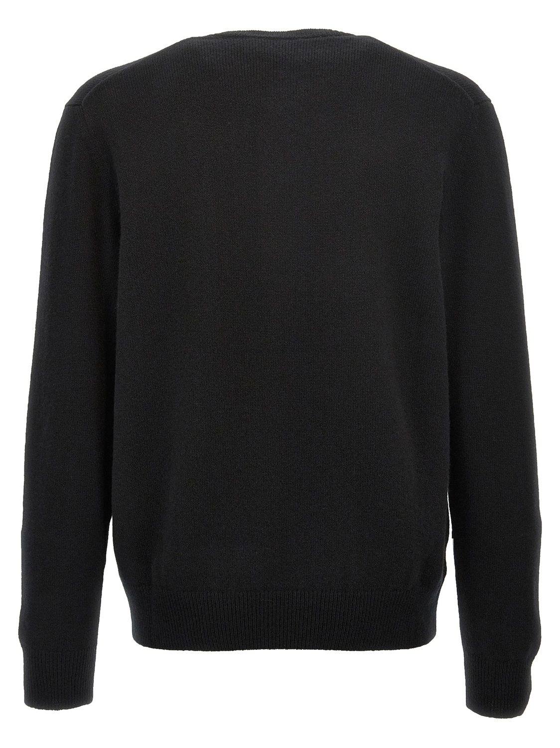 Шерстяной свитер с круглым вырезом и длинными рукавами на манжетах.