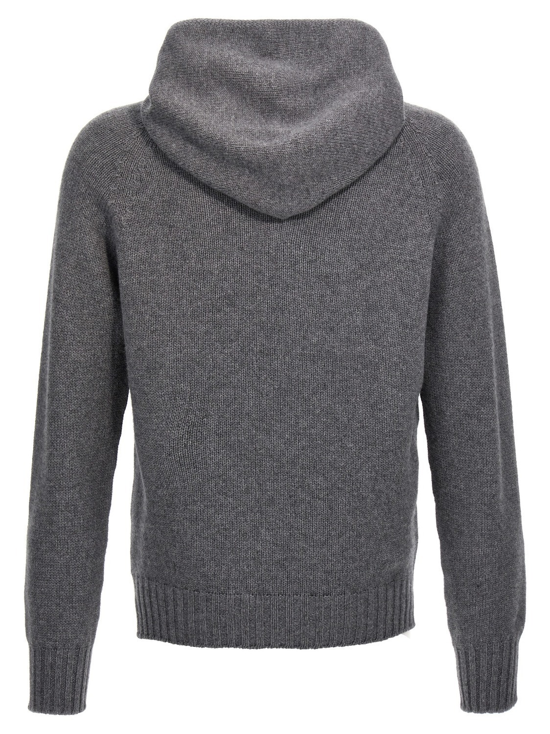 Шерстяной свитер с капюшоном и длинными рукавами на манжетах.
