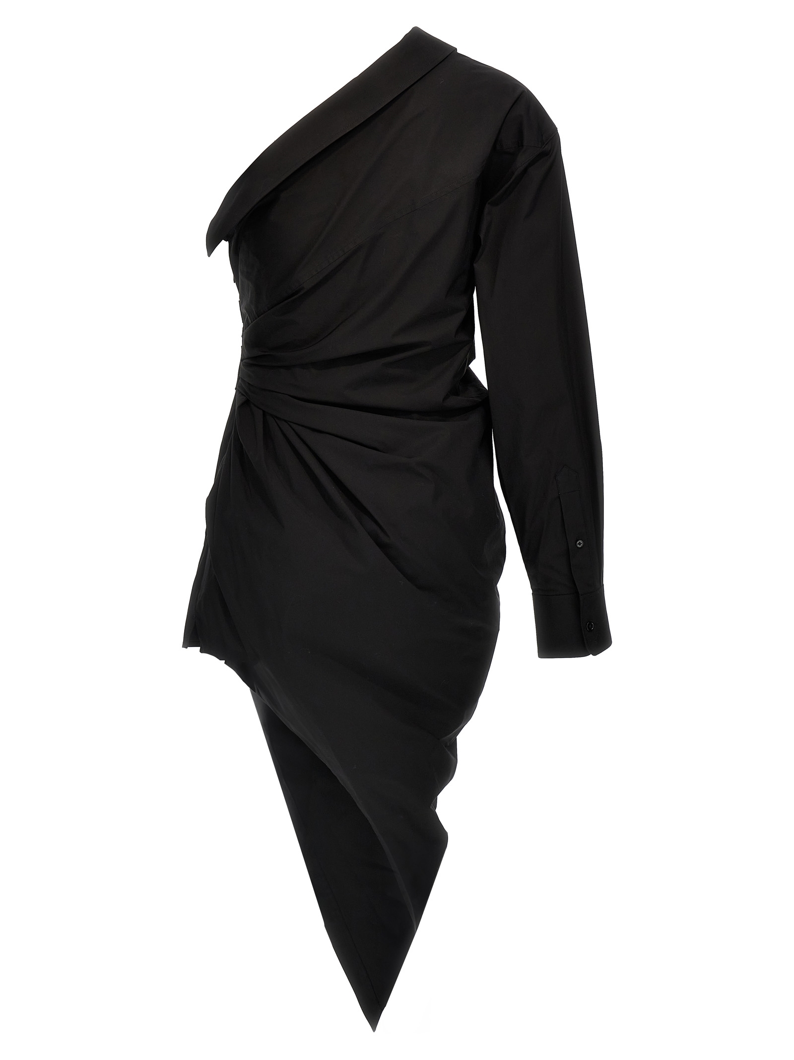 Асимметричное хлопковое платье-рубашка, модель на одно плечо с длинными рукавами на манжетах. Боковая застежка на молнию.