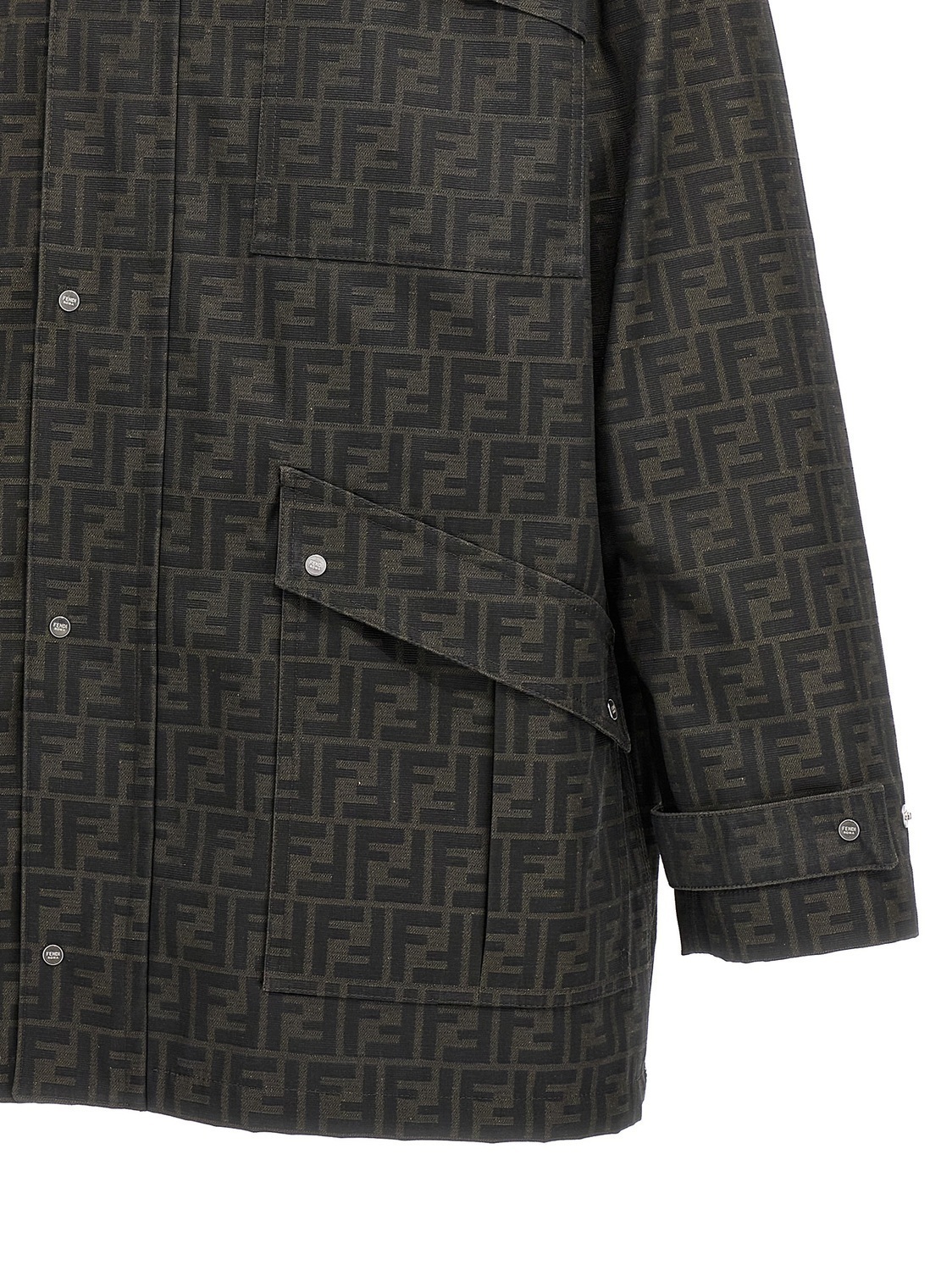 Куртка из вощеной ткани с жаккардовым логотипом 'FF' по всей поверхности, карманами, воротником из оленьей кожи, длинными рукавами.