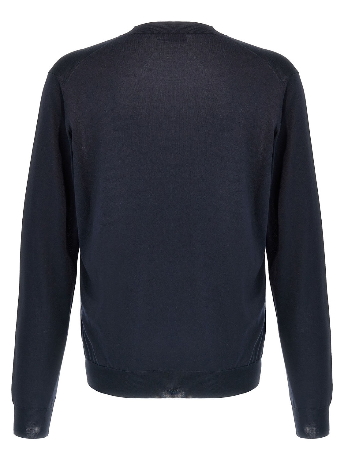 Шелковый свитер, контрастная вышивка логотипа спереди, круглый вырез, длинные рукава с манжетами.