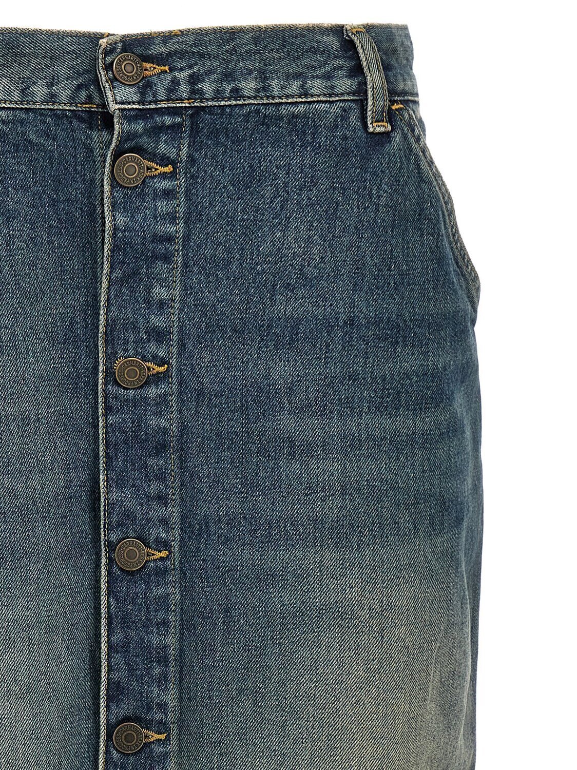 Миди-юбка 'Marvin' из денима Smith с эффектом поношенности, застежка на пуговицы спереди, карманы, кожаная нашивка с логотипом сзади.