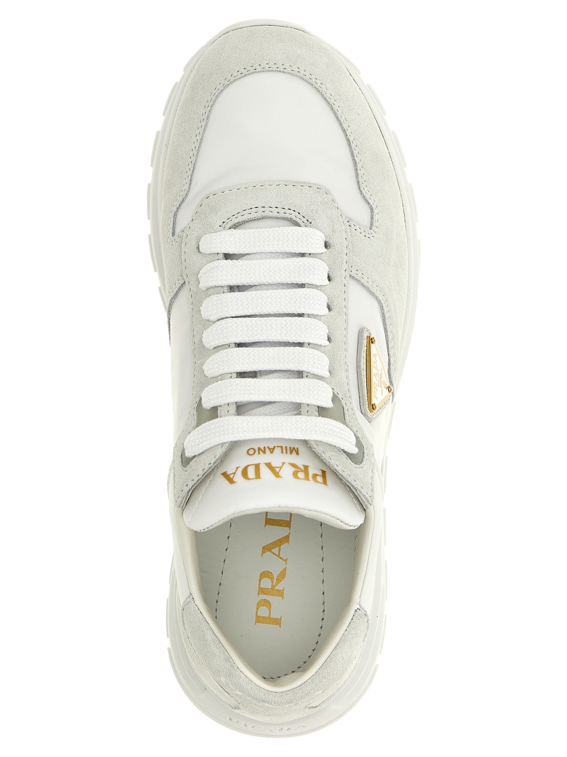 Кроссовки 'Prax 01' из Re-Nylon и замши, треугольный логотип из эмалированного металла сбоку, шнуровка, резиновая подошва.