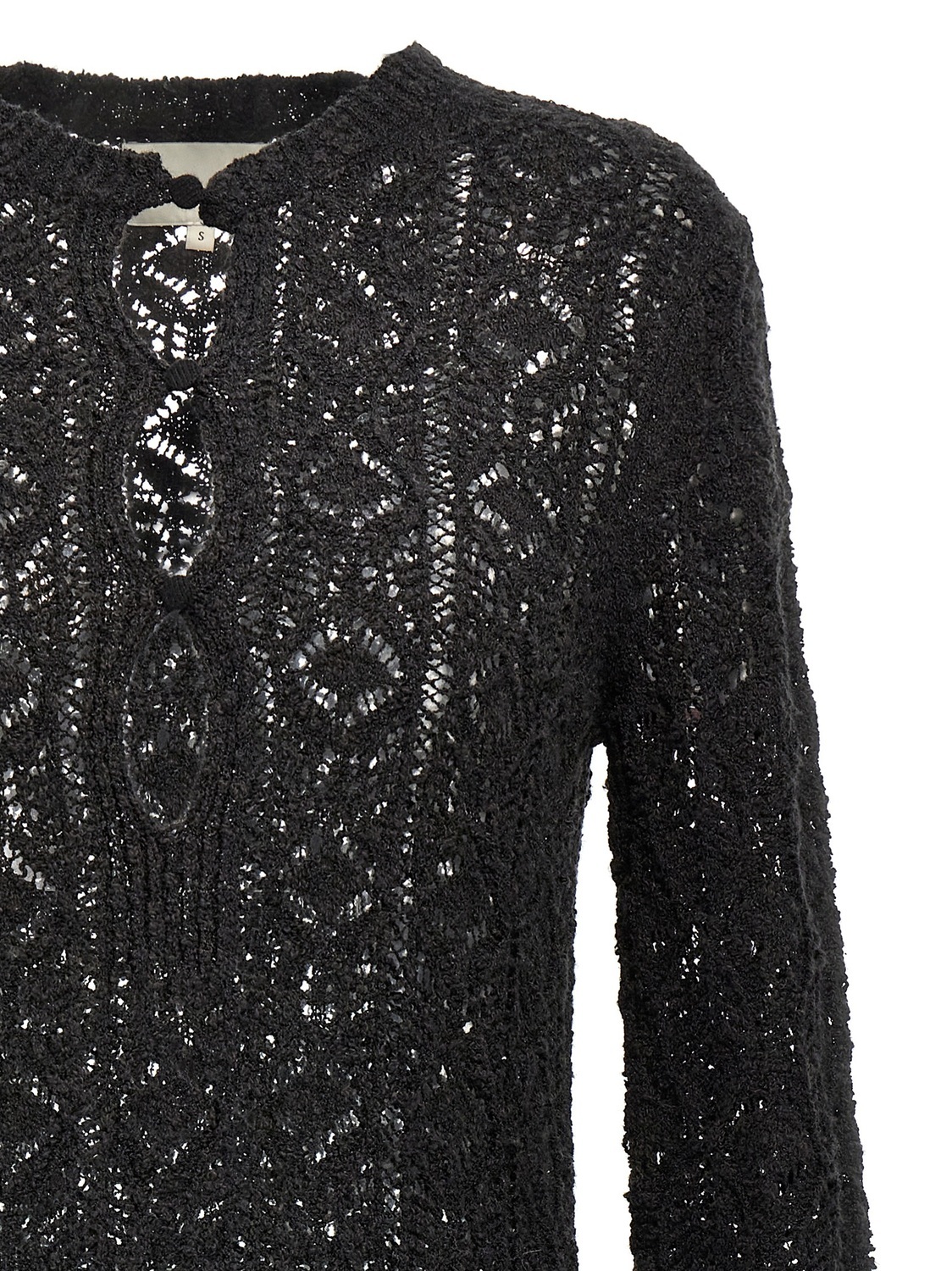 Мини-платье 'Evans' из смесовой хлопка и шелка, связано ажурной вязкой, круглый вырез с пуговицами спереди, длинные рукава. УСТОЙЧИВО: продукт OEKO-TEX.