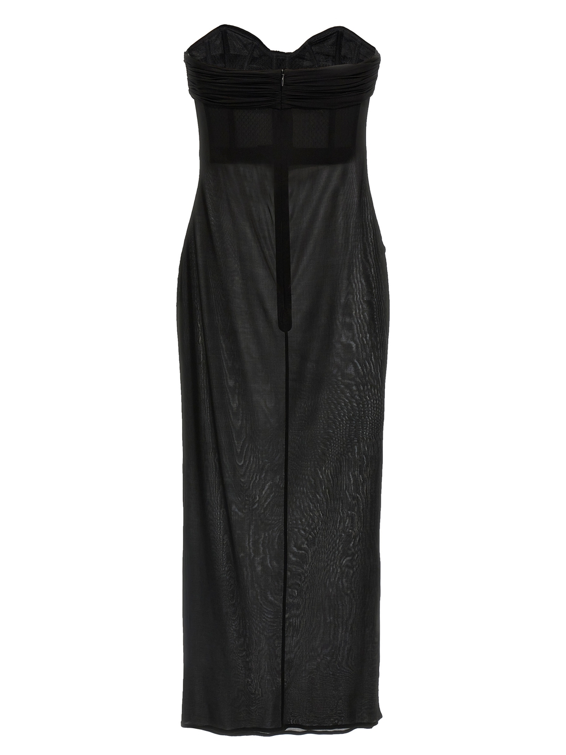 Платье миди '27' из эластичного купро I don't see, модель с открытыми плечами, сборкой на груди и встроенным бюстье, застежка-молния сзади.