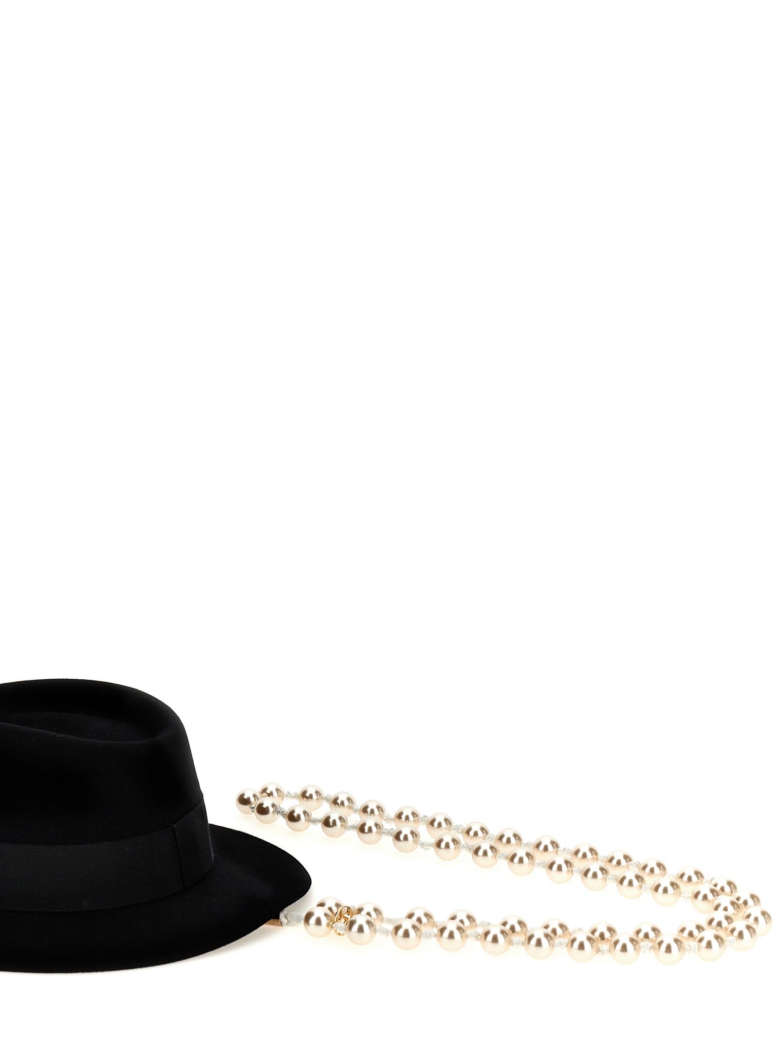 Сумка через плечо «Martine» из синтетического жемчуга и ткани, карабин и золотистый металлический логотип. Предназначена для переноски шляпы.