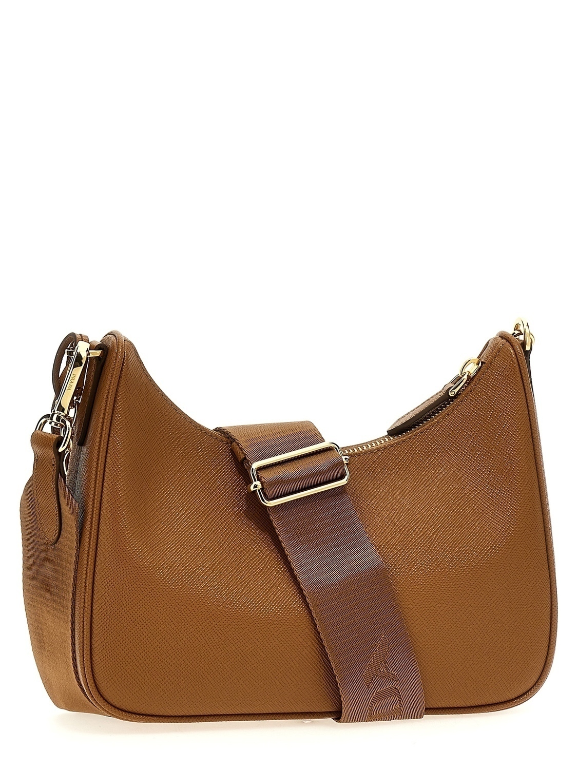 Кроссбоди из сафьяновой кожи 'Prada Re-Edition 2005' с фронтальным треугольным логотипом из эмалированного металла, застежкой на молнии, регулируемым и съемным плечевым ремнем из фирменной ткани с кожаным несессером на съемной молнии, съемным кожаным и металлическим брелоком для ключей.
