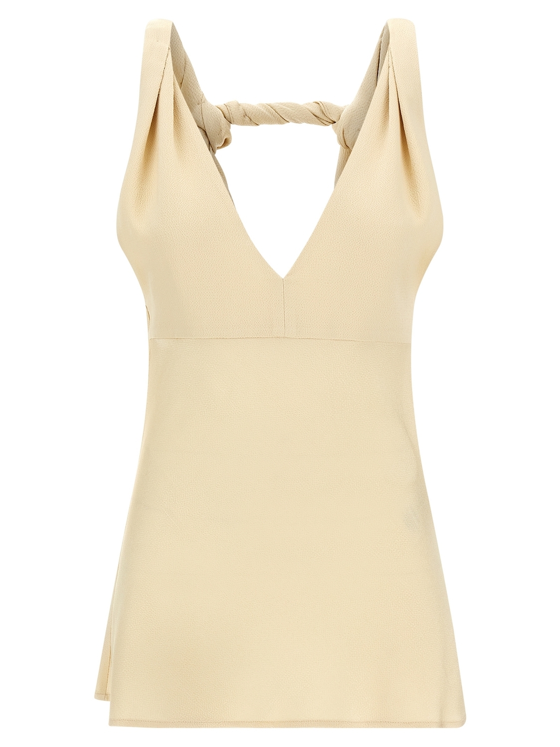 Вискозный топ 'Livia' с V-образным вырезом спереди и сзади, перекрученными бретелями и завязкой-бантом на спине.