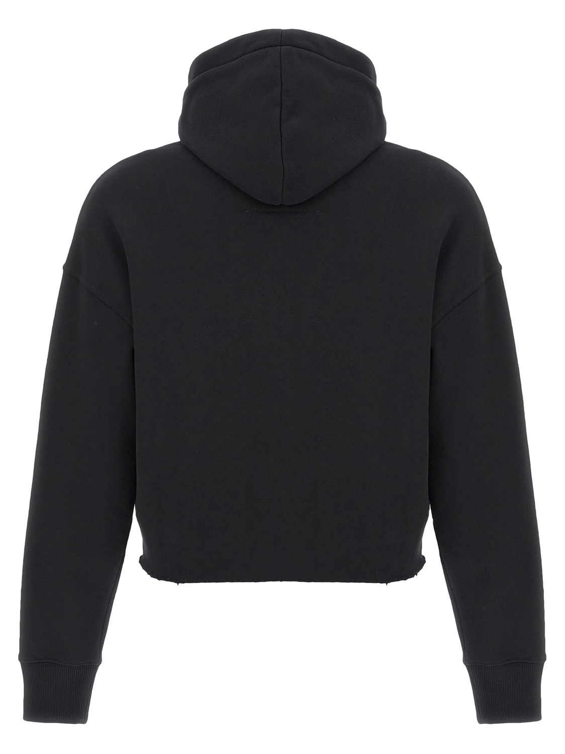 Худи из хлопка с начесом, укороченного кроя с принтом логотипа и необработанным краем.