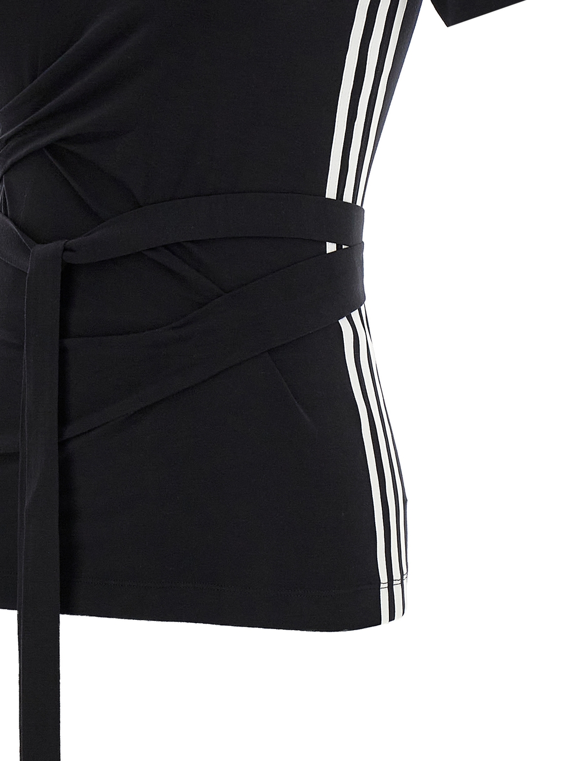 Футболка из эластичного лиоцелла с контрастными деталями, круглым вырезом, короткими рукавами и лентами на талии, которые можно завязывать по желанию.