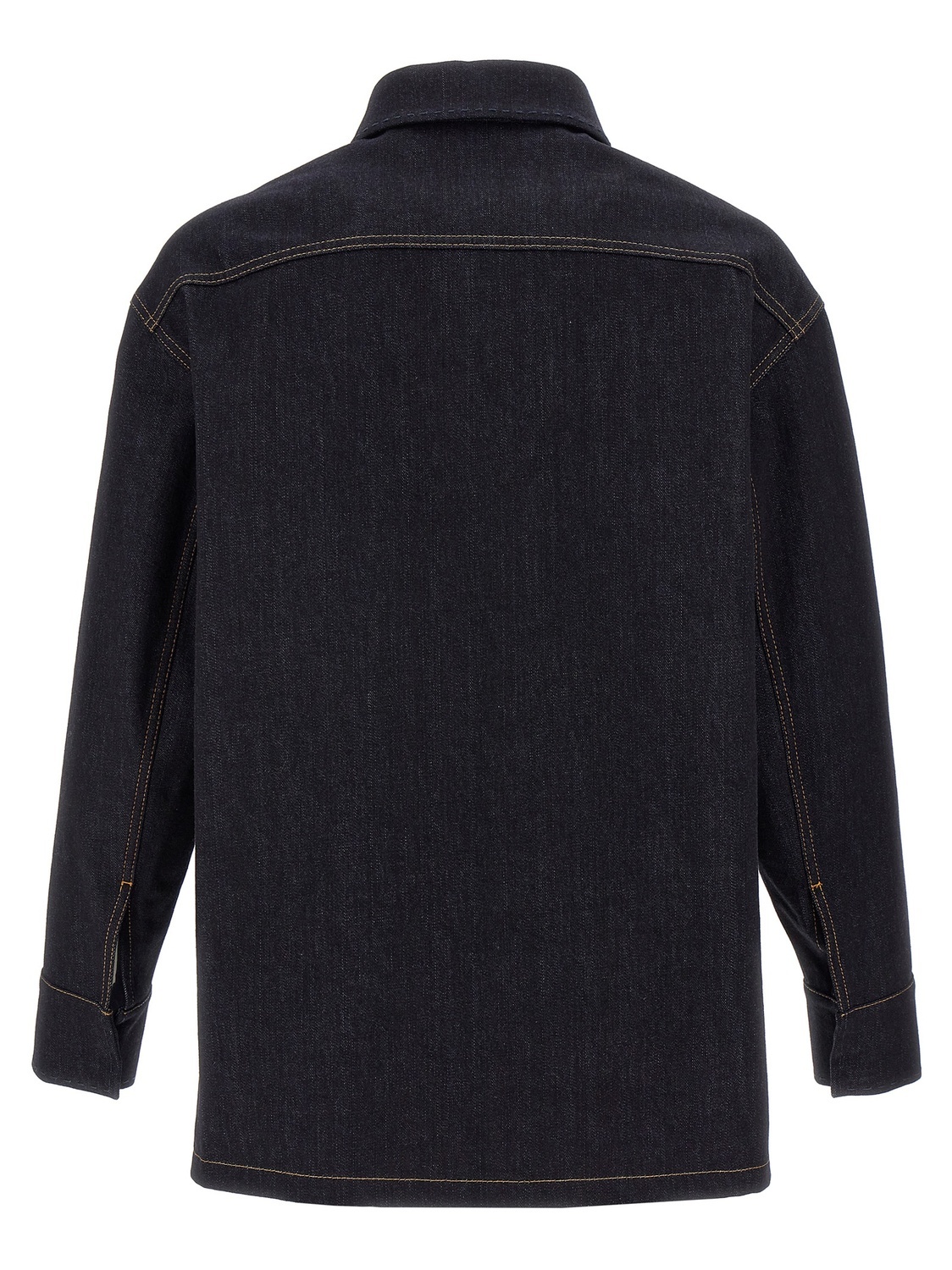 Джинсовая куртка, вышивка логотипа FF на переднем кармане, прямой крой, тон-в-тон седельная строчка и контрастная строчка, отложной воротник, застежка на кнопки спереди, карманы, длинные рукава с манжетами и заниженной линией плеча.