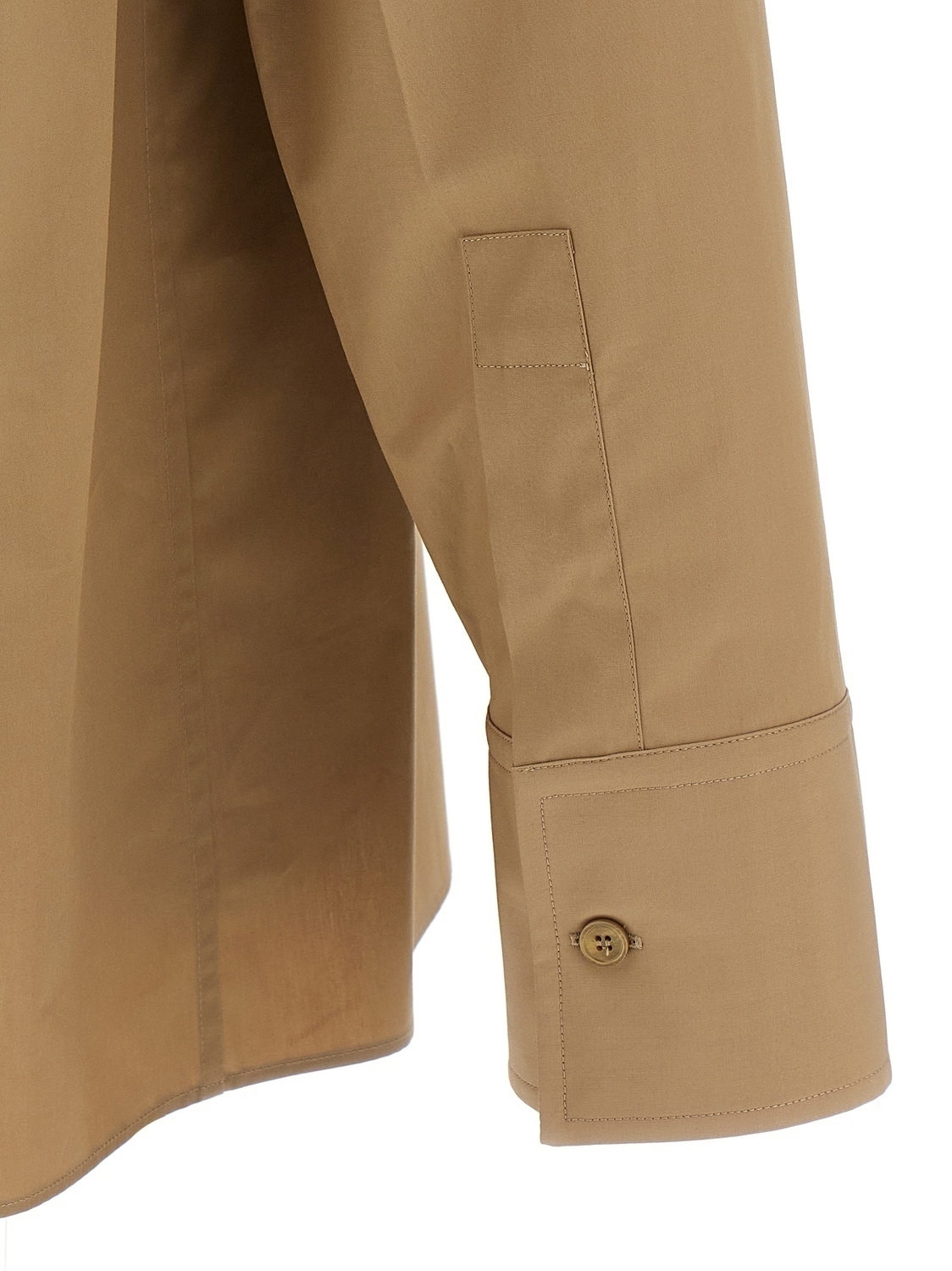 Рубашка из хлопкового поплина с тисненным логотипом спереди, застежкой на пуговицы, длинными рукавами с манжетами и заниженными плечами.