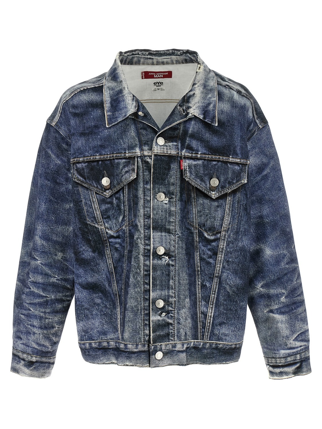 Куртка Junya Watanabe x Levi's из хлопка с принтом под деним винтажного эффекта, с воротником, застежкой на пуговицы спереди, карманами, длинными рукавами с манжетами.