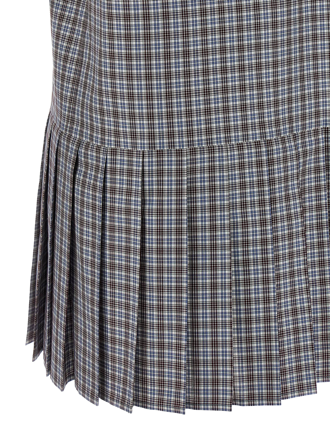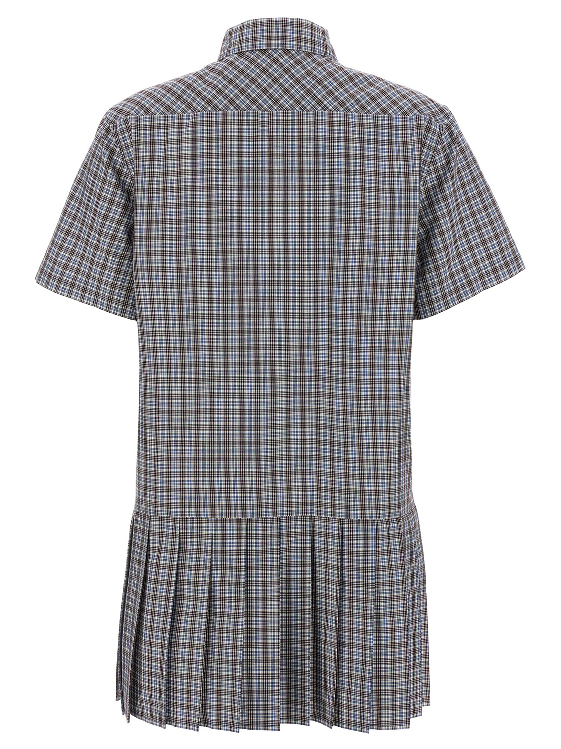 Мини-платье из хлопкового поплина с принтом в клетку по всей поверхности, модель рубашки на пуговицах, вышивка логотипа и застежка на пуговицах спереди, плиссированная юбка и короткие рукава.