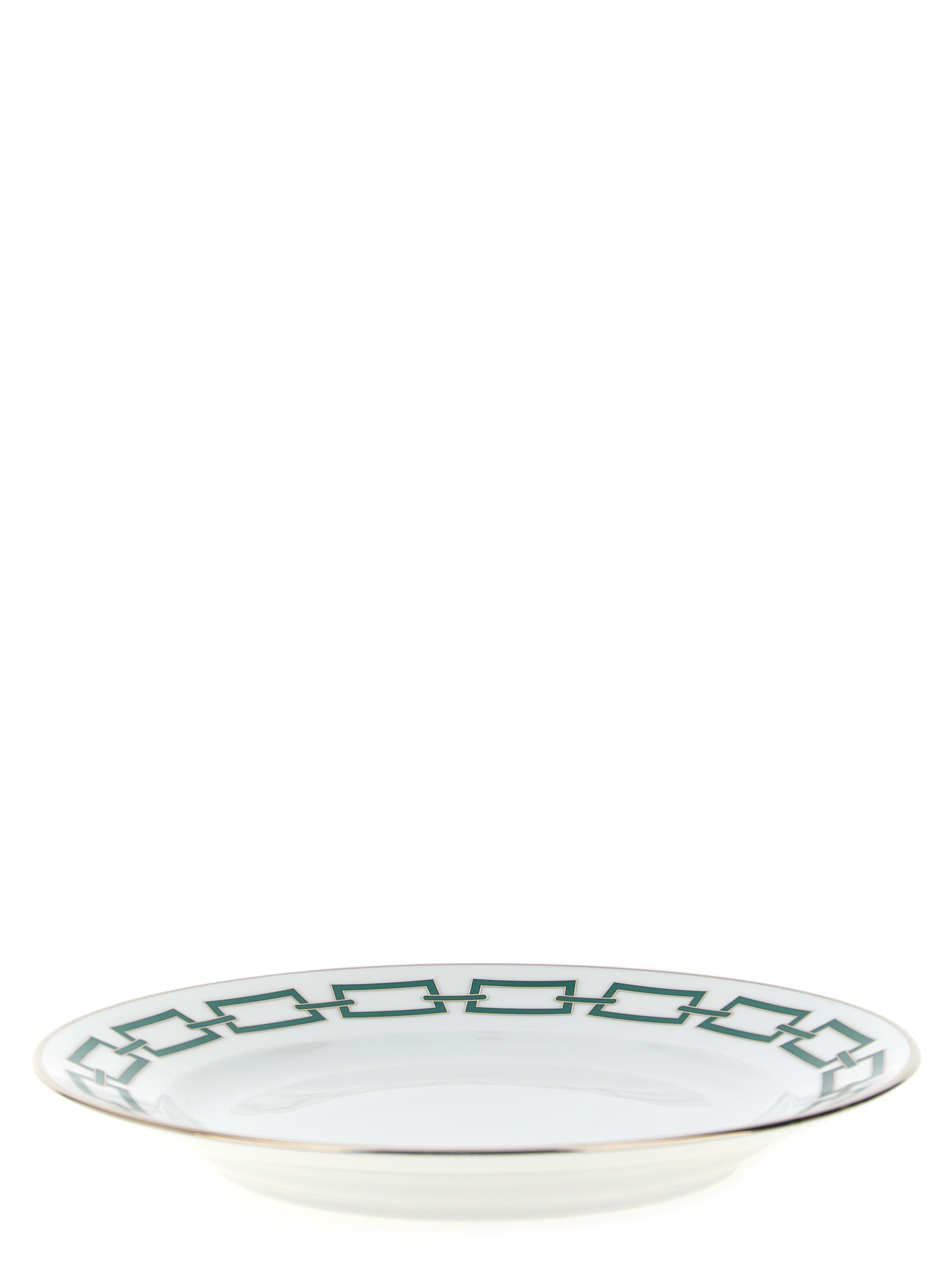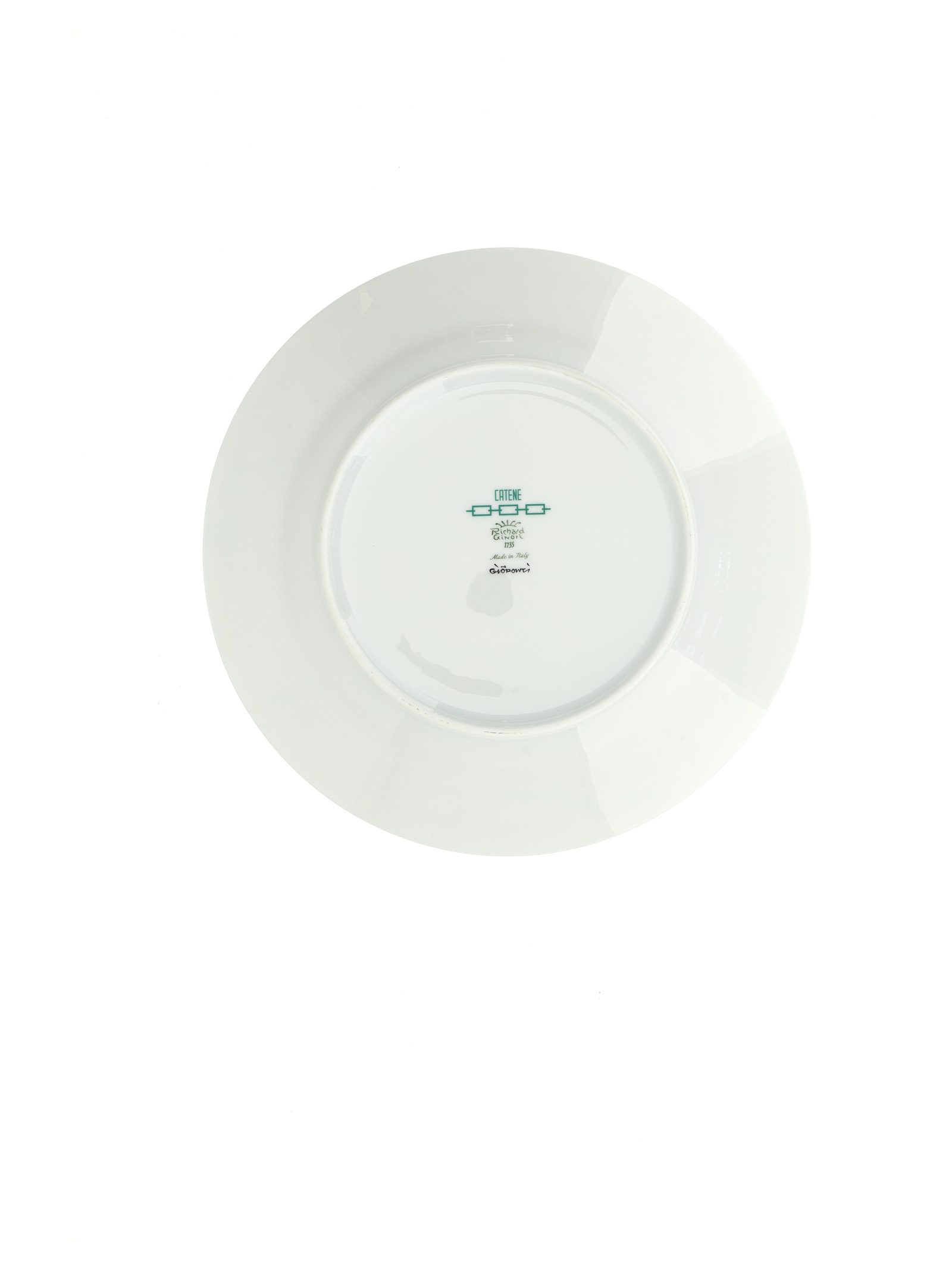 Круглый фарфоровый поднос с декором из изумрудно-зеленого и платины. Коллекция 'Catene' Джио Понти.