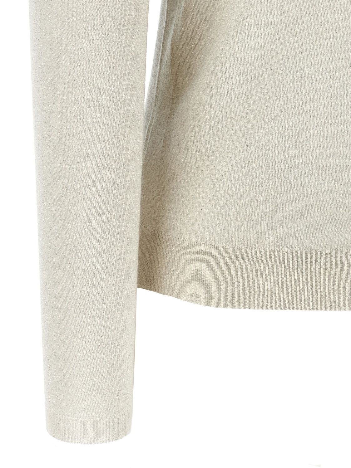 Водолазка из смеси кашемира и шелка с люрексом, высоким воротником и длинными рукавами с манжетами.