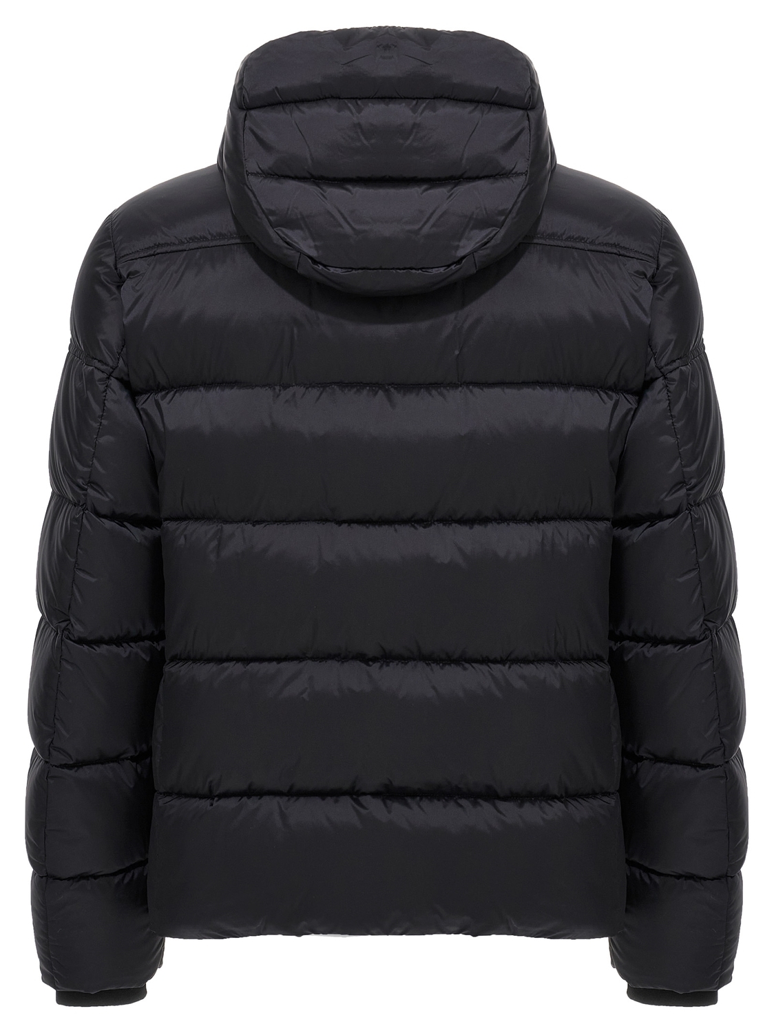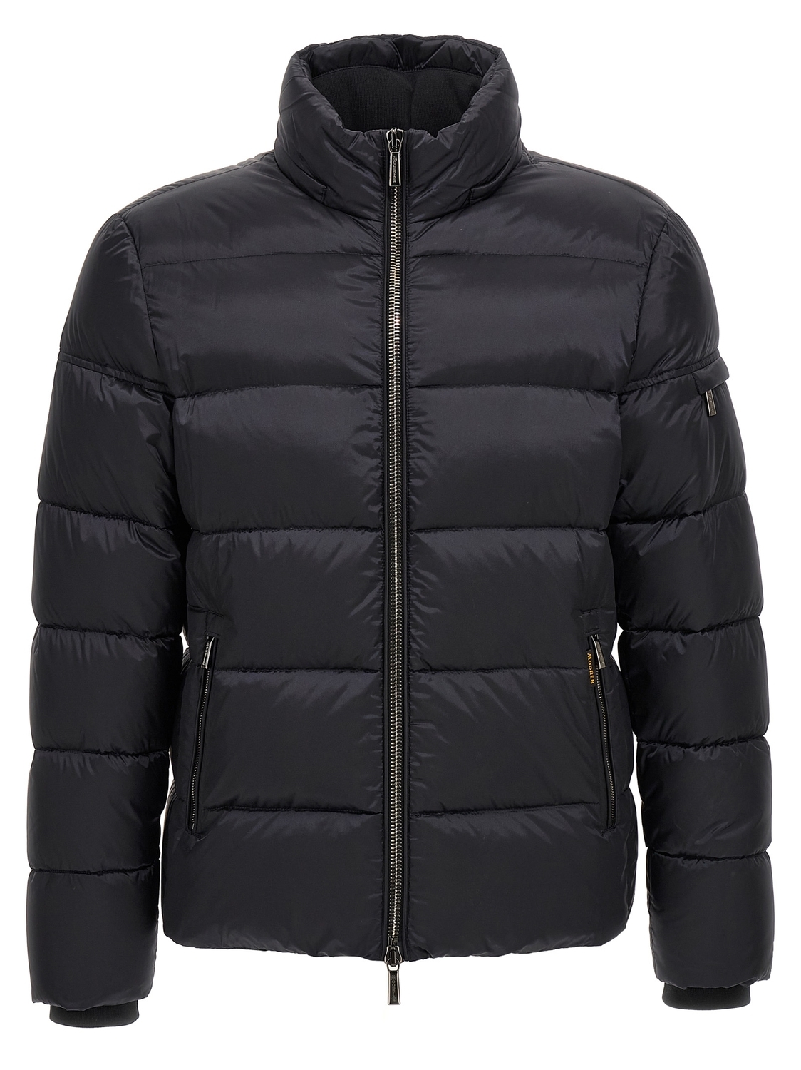 Бомбер 'Brett' из сверхлегкой, водоотталкивающей и непроницаемой для пуха матовой ткани с простеганной набивкой из гусиного пуха, съемным капюшоном с кулиской и застежкой на кнопку у шеи, высоким воротником, застежкой-молнией спереди, карманами, длинными рукавами с вязанными ветрозащитными манжетами, кулиской по нижнему краю.