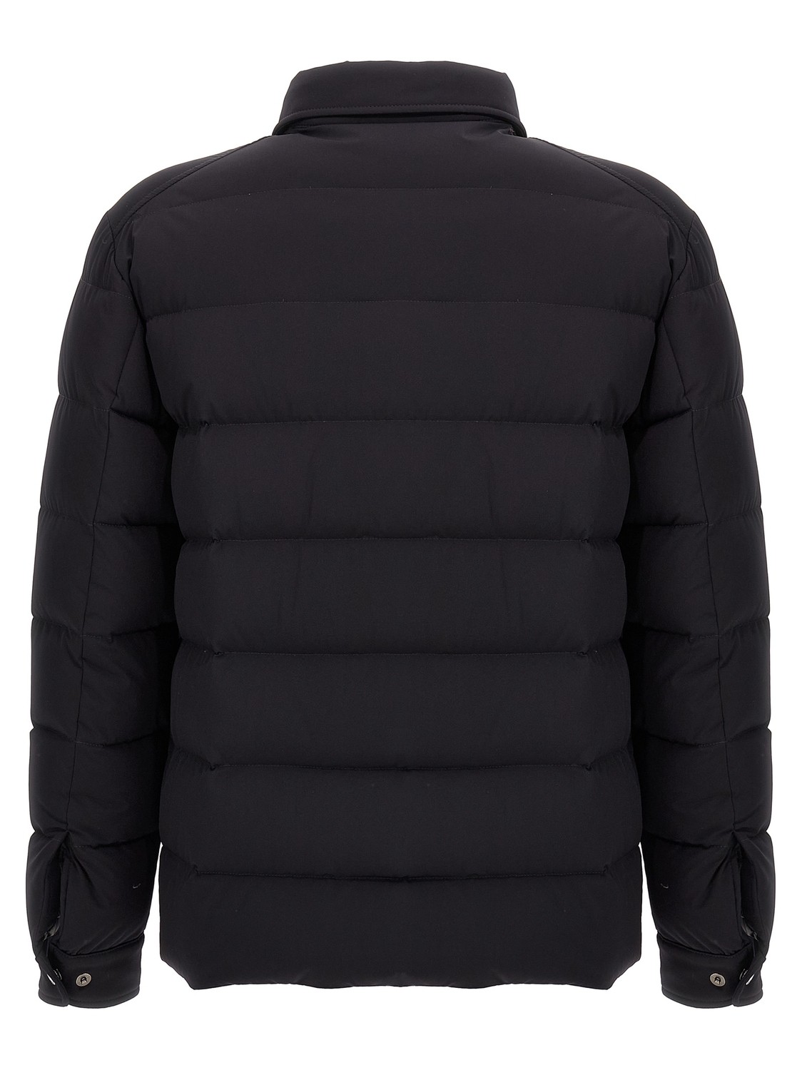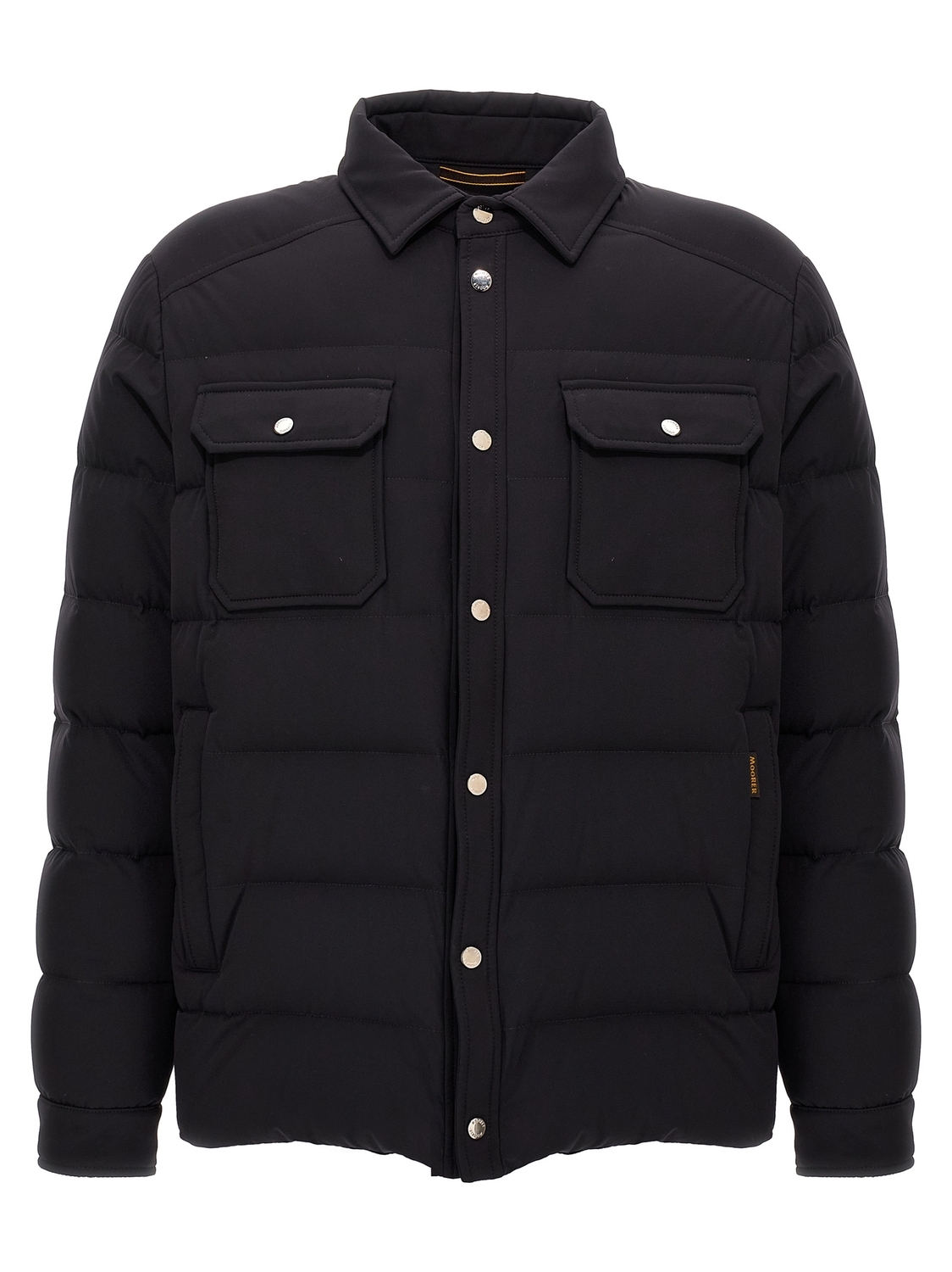 Рубашка-овершот 'Veton' из стеганой ткани «boudin» с утеплителем из гусиного пуха, с отложным воротником, застежкой на кнопки спереди, карманами и длинными рукавами с манжетами.