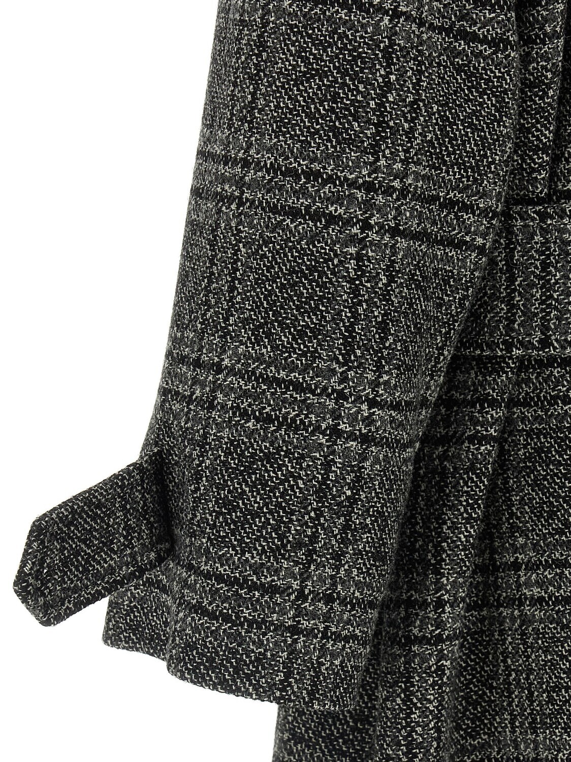Винтажное шерстяное пальто 'One Layer' в клетку, деконструированный реглан, подкладка из купро, карманы, намеренное отсутствие пуговиц, длинные рукава.