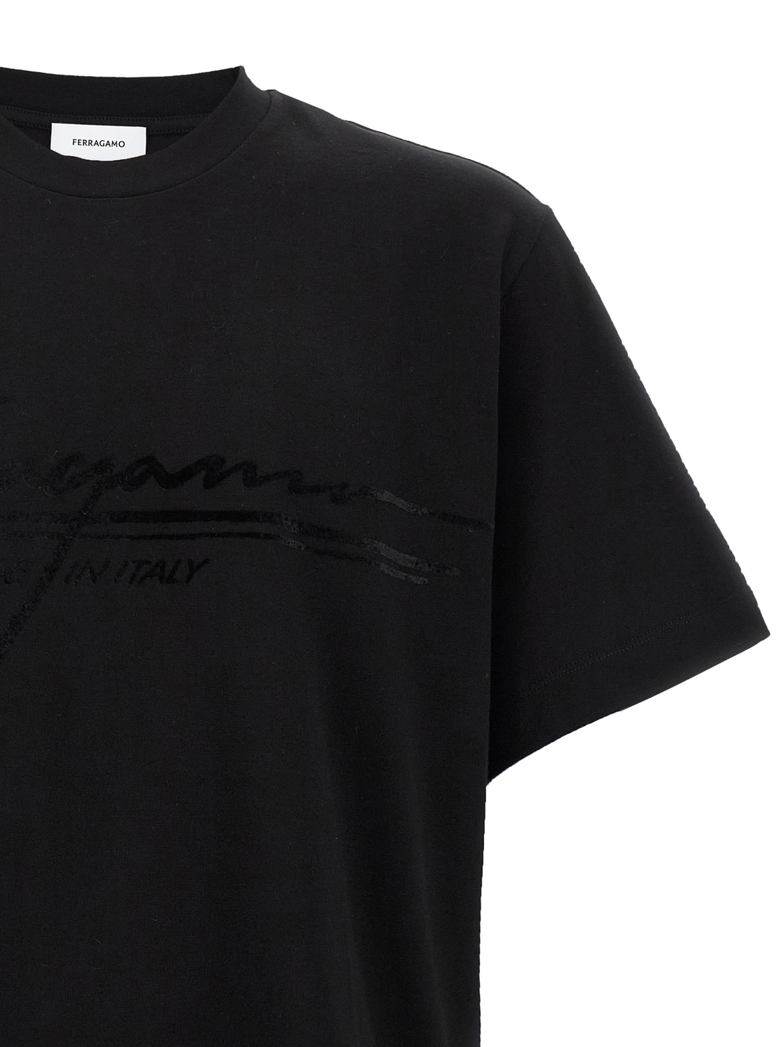Футболка из компактного джерси с флокированным тоном в тон принтом «Firma» спереди, круглым вырезом и короткими рукавами.