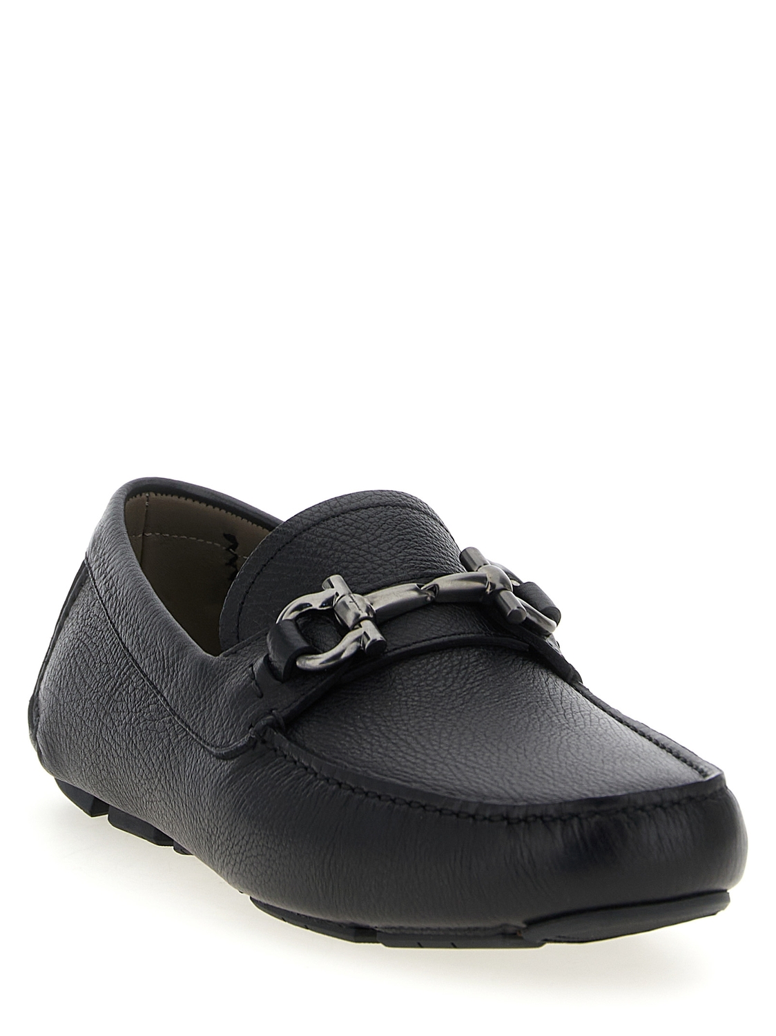 Лоферы «Parigi New» из зернистой кожи в стиле Driver с металлической застежкой «Gancini» и простроченным рантом спереди, на резиновой подошве.