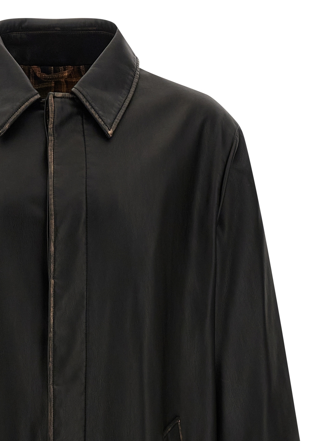 Кардиган 'J-Rivers' из материала с потертым эффектом кожи и блестящей ворсистой поверхностью, подкладка из клетчатой фланели, рубашечный воротник, застежка на пуговицы спереди, карманы, длинные рукава с тисненым логотипом, задний разрез.