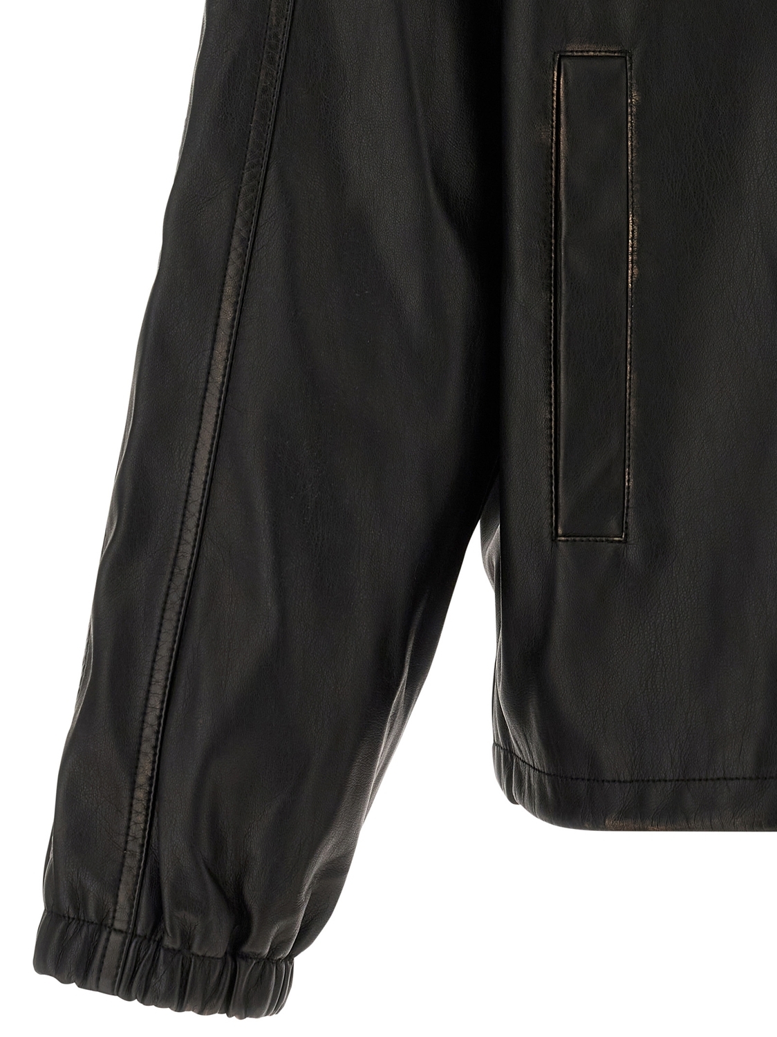 Куртка 'J-Ake' из ткани с эффектом состаренной кожи с блеском, подкладка из фланели в клетку, отложной воротник, застежка-молния спереди, карманы, длинные рукава с тисненным логотипом и заниженной линией плеча, кулиска по нижнему краю.