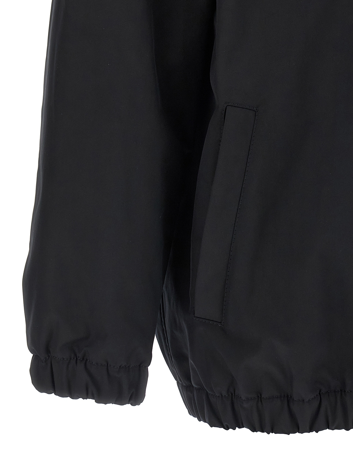Нейлоновая куртка с капюшоном, капюшон на кулиске, застежка-молния, металлический патч VLogo на кармане, длинные рукава, эластичные манжеты и низ.